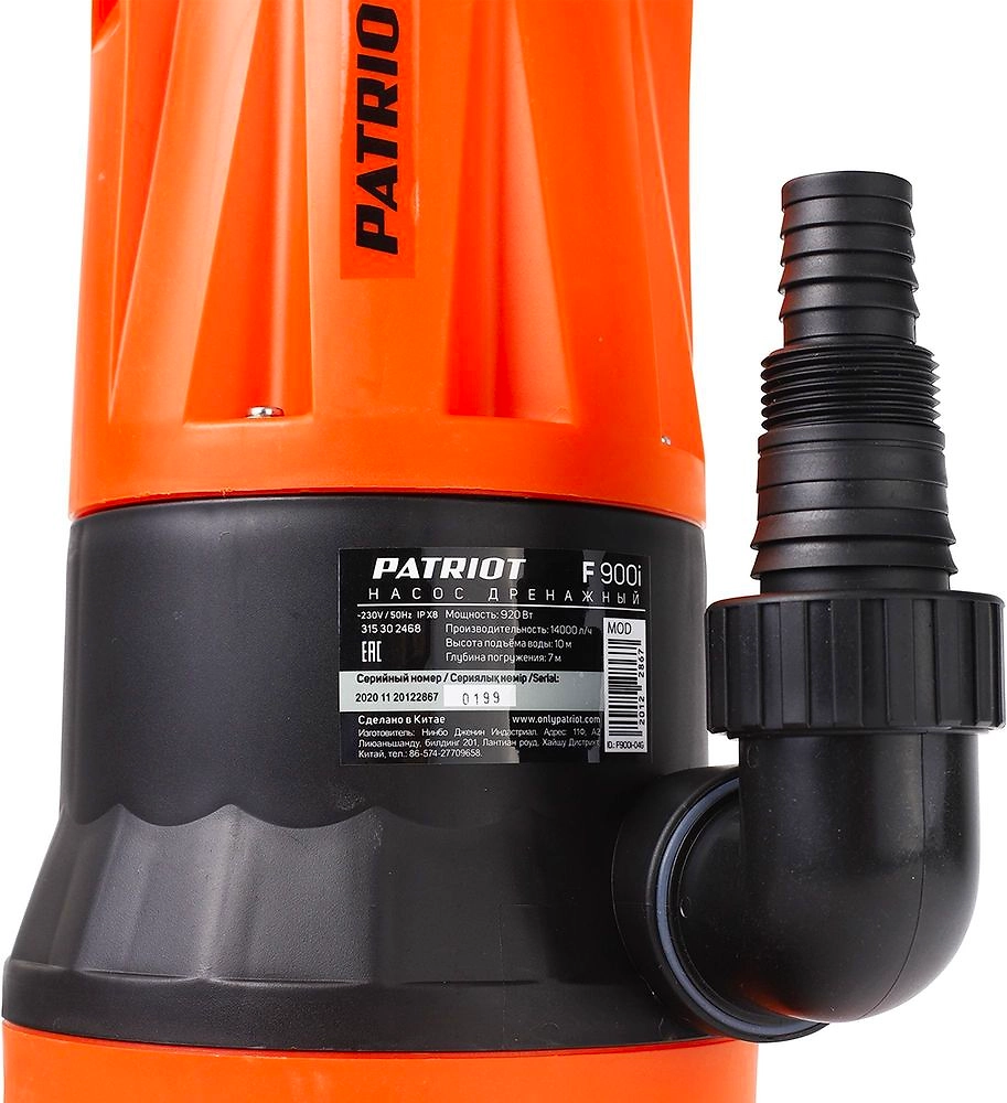 PATRIOT F 900I - мощный погружной насос для откачивания воды из различных емкостей и водоемов и подачи ее для полива растений или в бытовых целях.