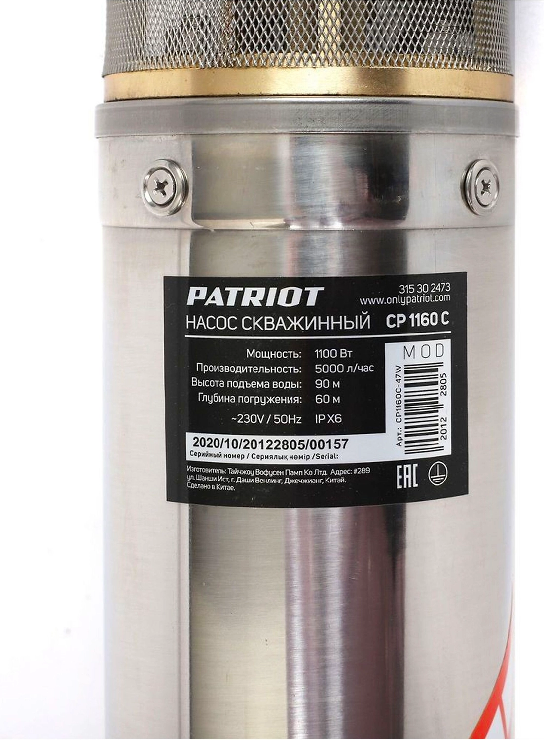 PATRIOT CP 1160 C - мощный скважинный насос для выкачивания воды из колодцев, водоемов, различных емкостей для полива растений в саду и других бытовых целей.