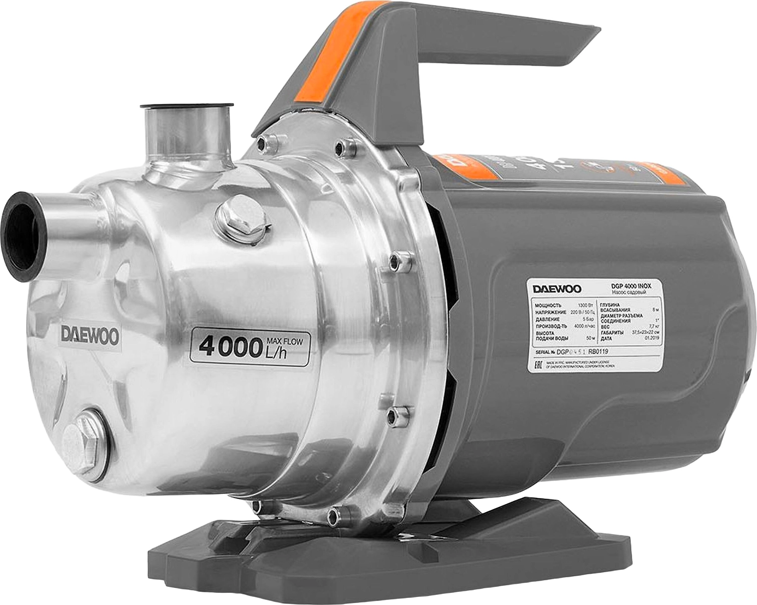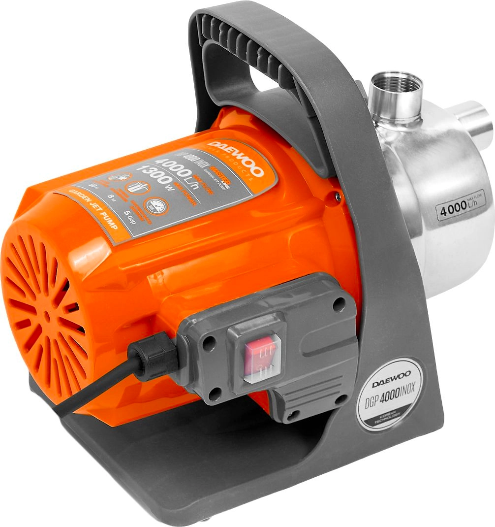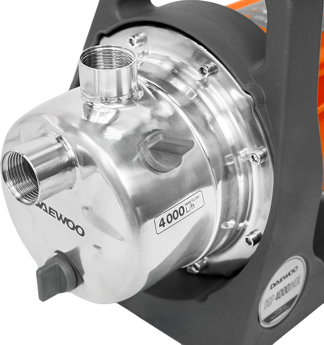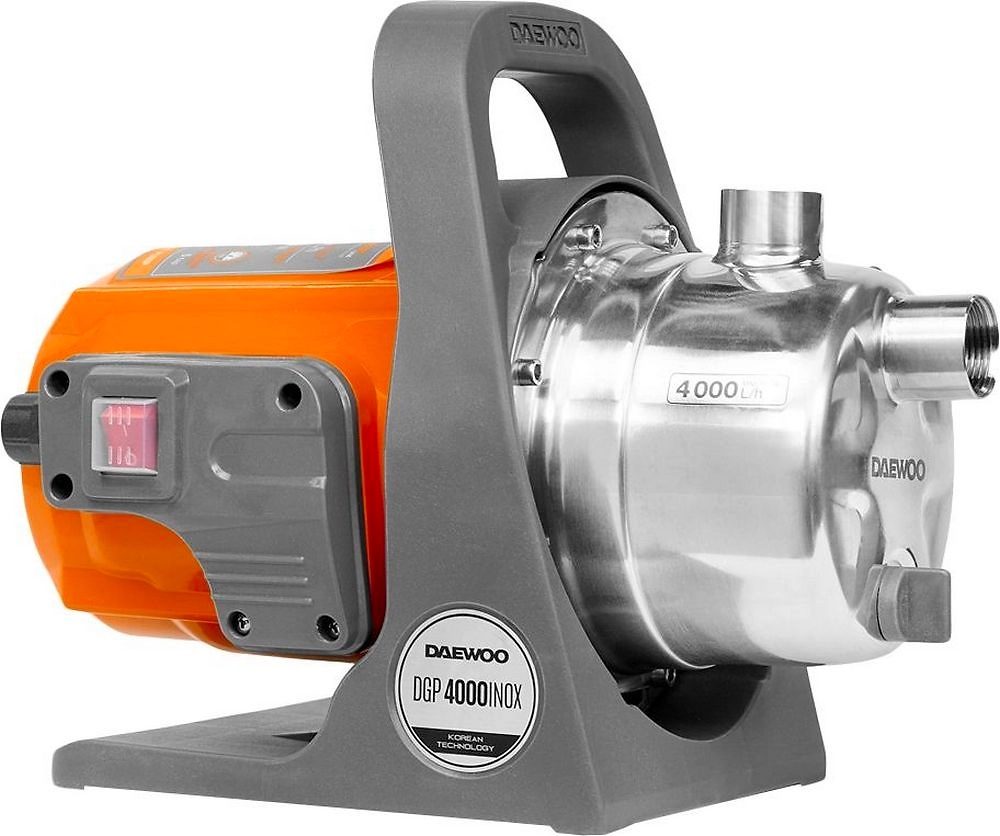 **Насос DAEWOO DGP 4000 i** - мощный садовый насос с корпусом из нержавеющей стали inox и встроенным фильтром грубой очистки.