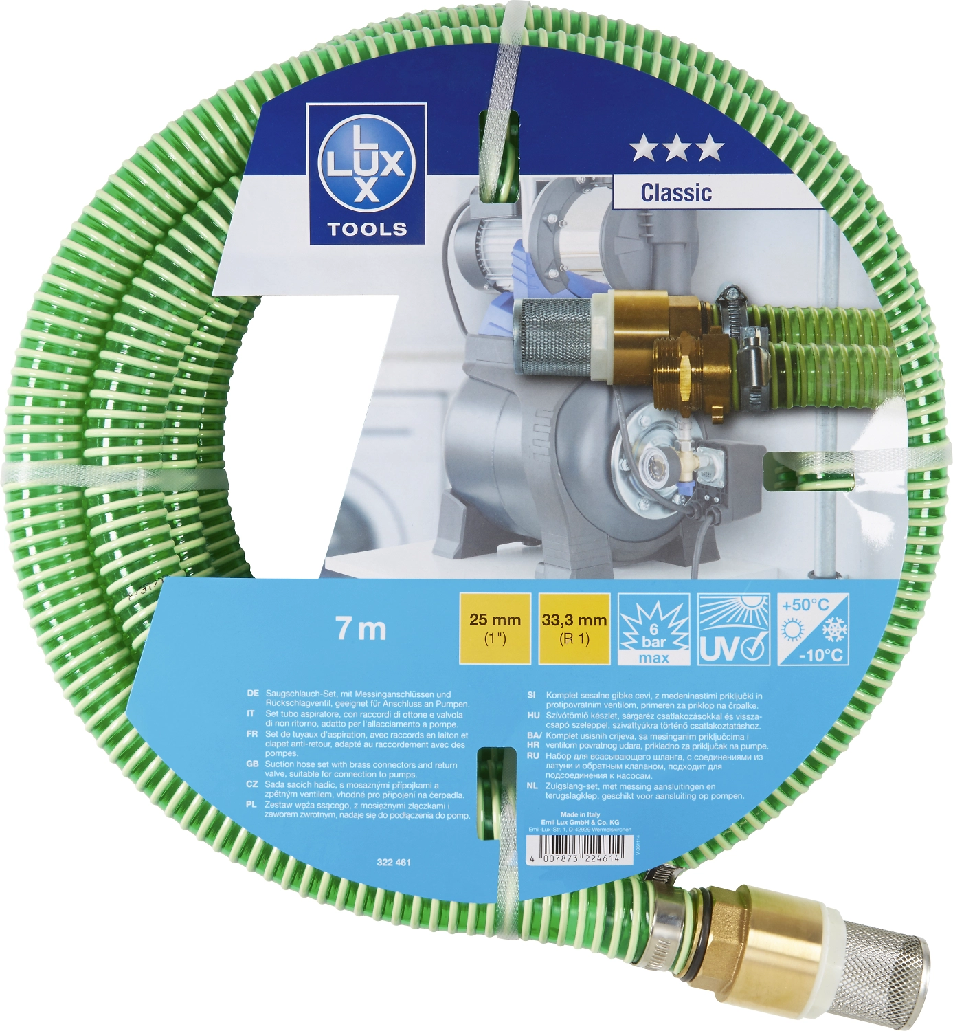 Комплект для подключения насоса с гибким насосным шлангом из ПВХ с жестким спиральным армированием. Пригоден для забора воды, имеет запатентованную полифузную систему соединения, 100% герметичность. Оснащен латунным фильтром.