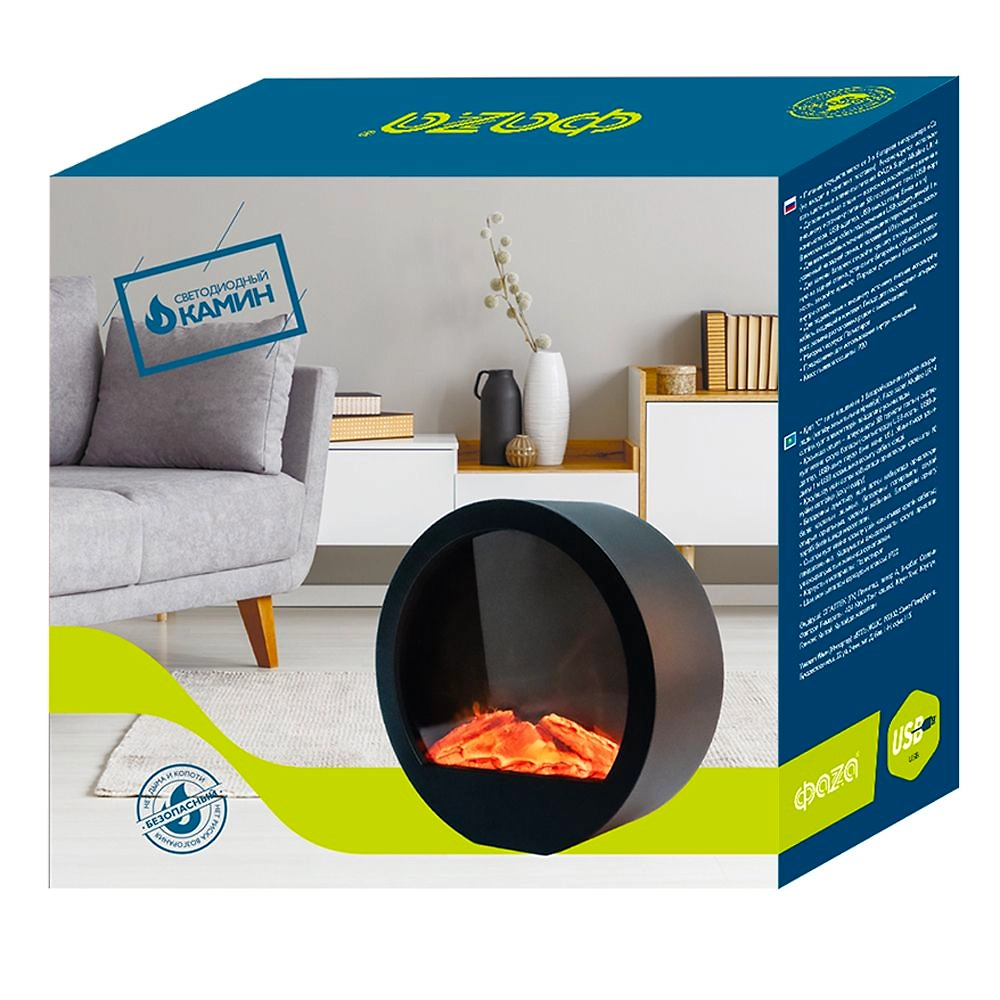Камин светодиодный фаzа с эффектом огня - интерьерный декор в современном стиле. LED светильник с имитацией горящих дров соответствует праздничному духу Нового года и Рождества. Нетривиальный дизайн с корпусом круглой формы придает камину изысканный вид.