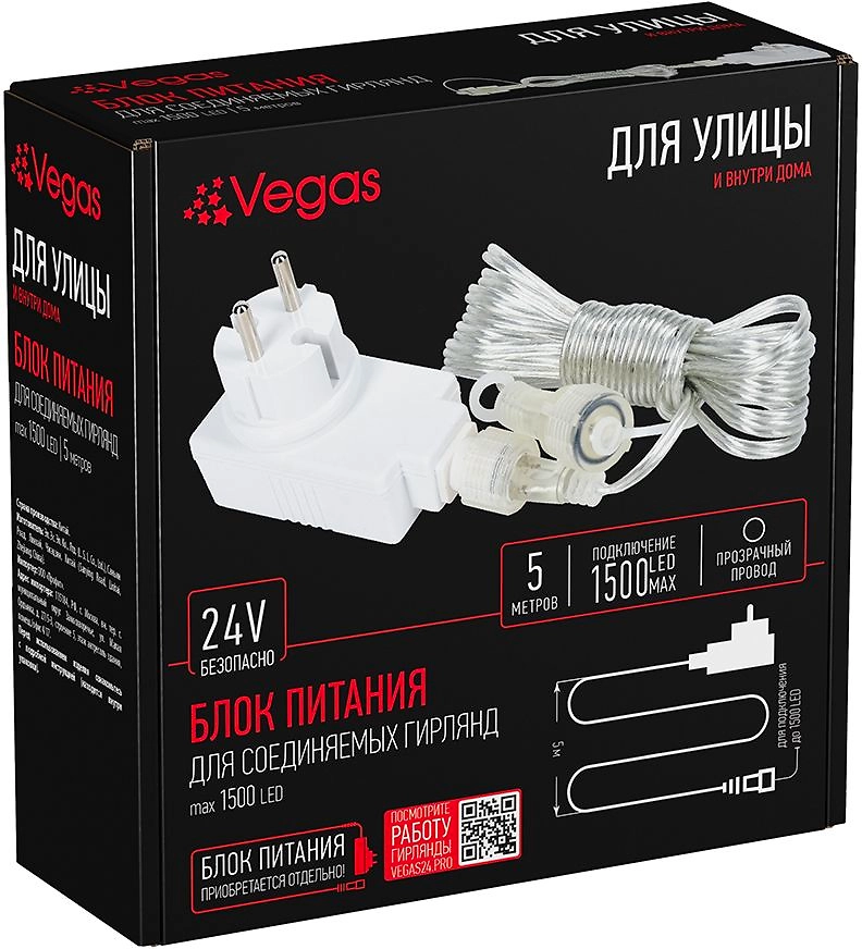 Для подключения низковольтных гирлянд до 1500 ламп Мощность 30 W. Цвет провода прозрачный. Степень защиты IP 44. Имеет возможность подключения до 1 500 LED. Срок службы 25 000 часов.