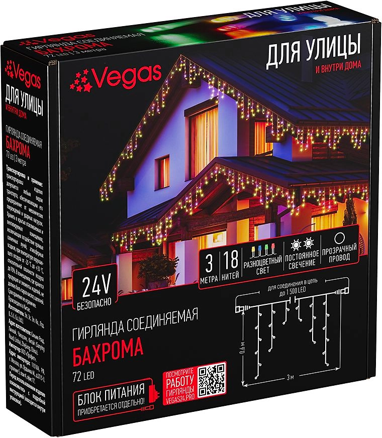 Электрогирлянда-конструктор VEGAS Бахрома72 разноцветных LED ламп 3x0,6 м
