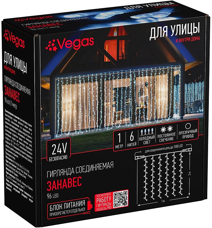 Электрогирлянда-конструктор VEGAS Занавес 96 холодных LED ламп 1x2 м