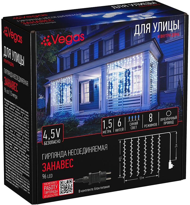 Электрогирлянда VEGAS Занавес 96 синих LED ламп 1,5x1,5 м 8 режимов