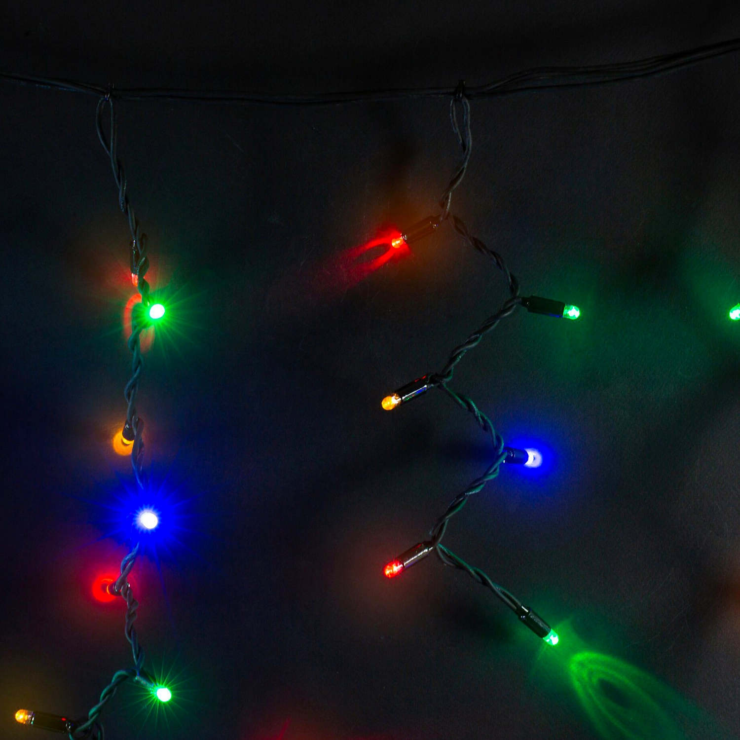 Гирлянда состоит из 10 нитей, на которой елочкой расположены 100 сверхъярких светодиодов. Разноцветный свет хорошо сочетается с темнотой ночи. Блок питания приобретается отдельно.