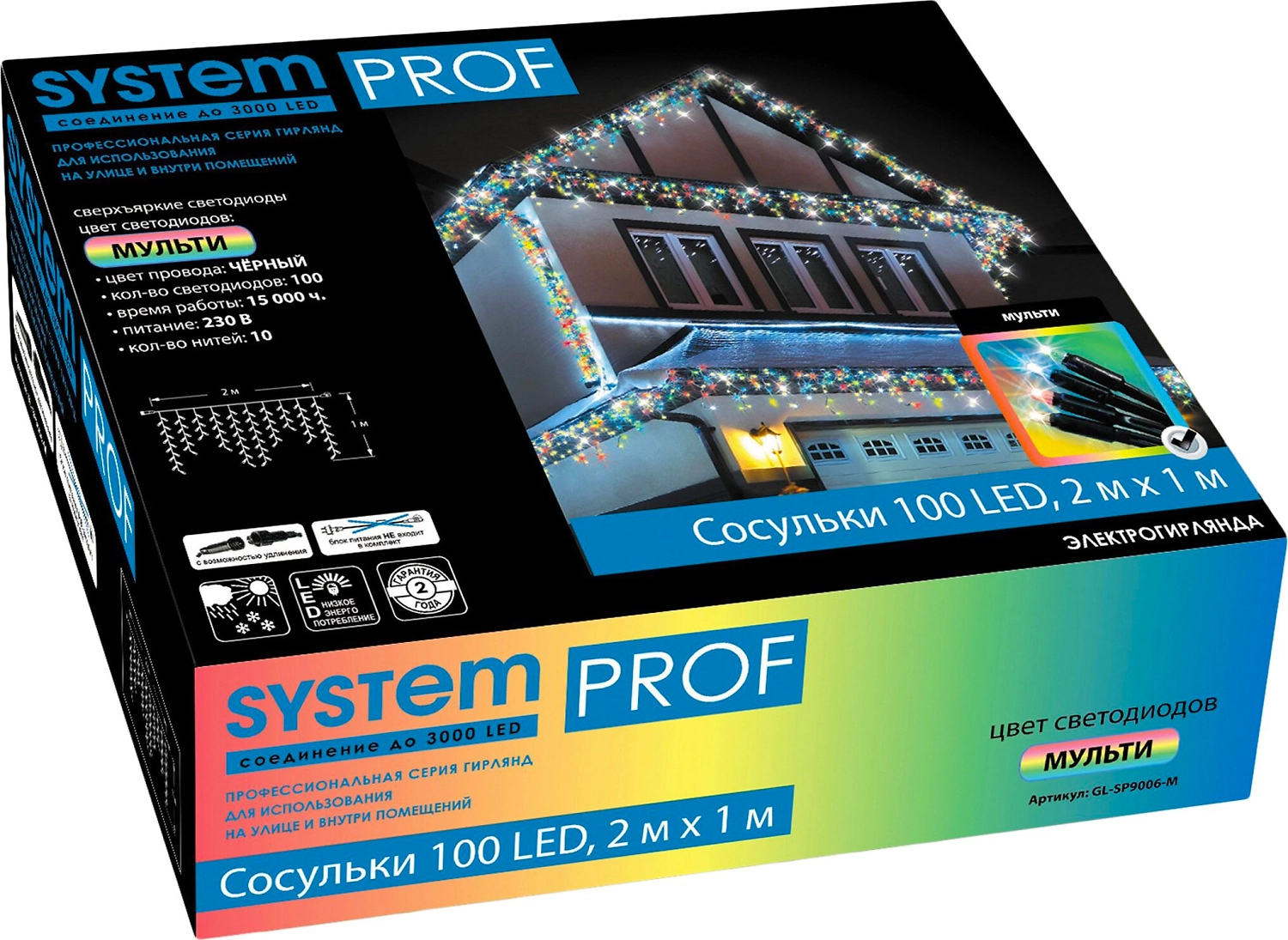 Гирлянда бахрома SYSTEM PROF 100 LED многоцветный 2 м