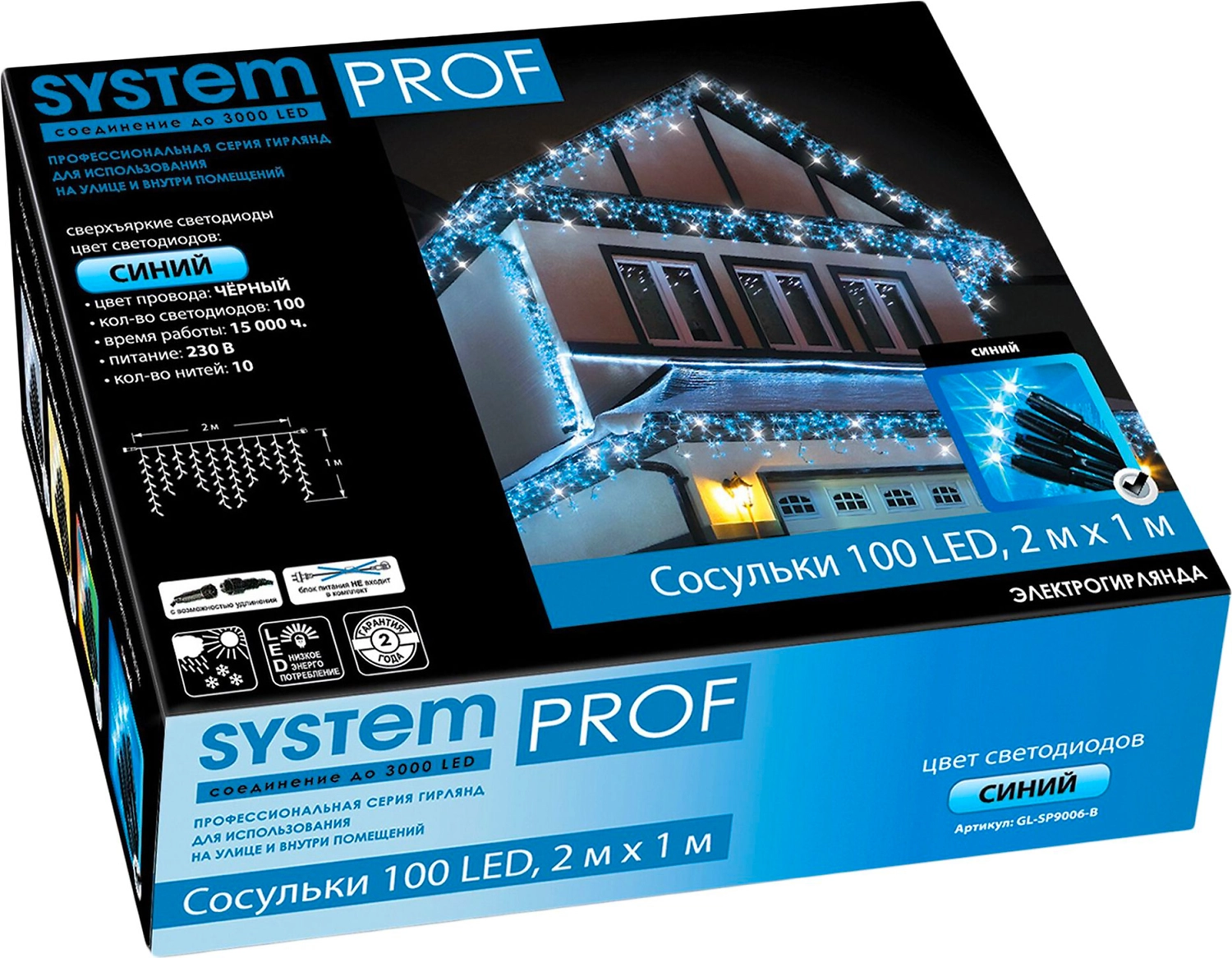 Гирлянда бахрома SYSTEM PROF 100 LED синий 2 м
