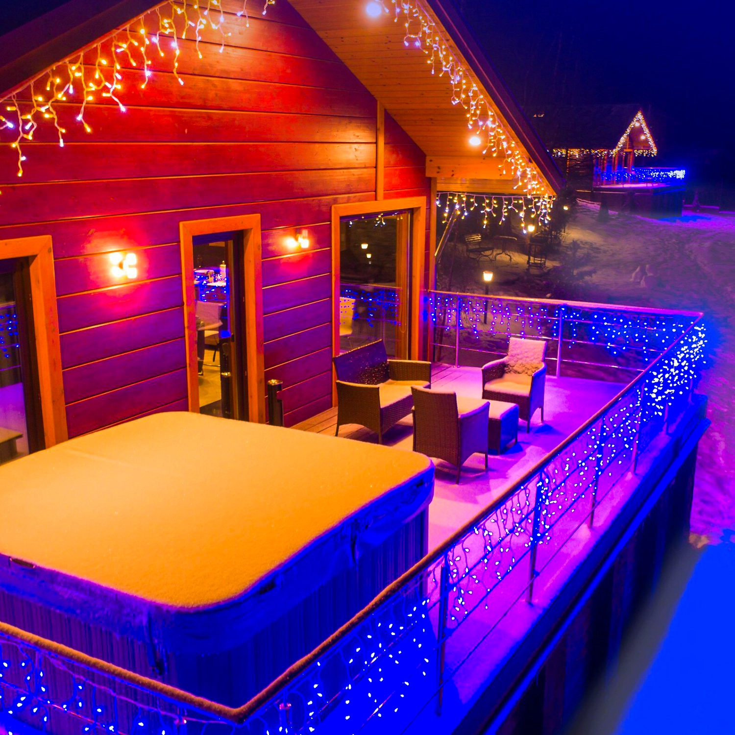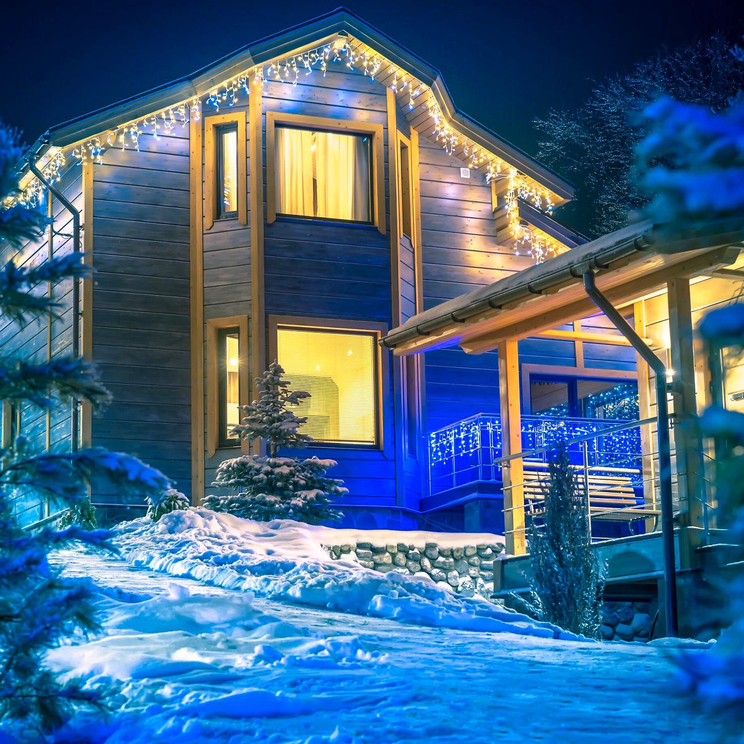 Светодиодная гирлянда поможет со вкусом украсить ваш дом. Дополнительное освещение будет красиво смотреться под козырьком крыши, на фасаде здания, перилах лестниц, дверной группе, а также каминной полке, стене или над дверью.