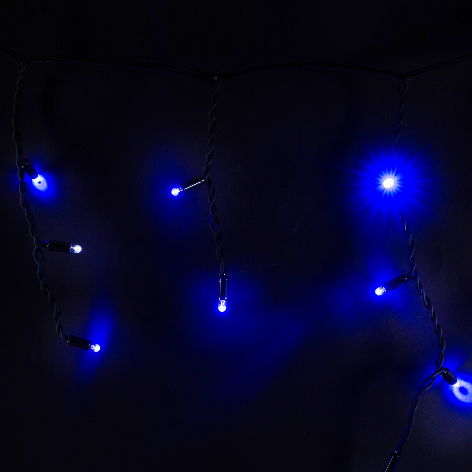 Гирлянда состоит из 17 нитей, на которой елочкой расположены 50 сверхъярких светодиодов. Холодный белый и синий свет хорошо сочетается с темнотой ночи. Блок питания приобретается отдельно.