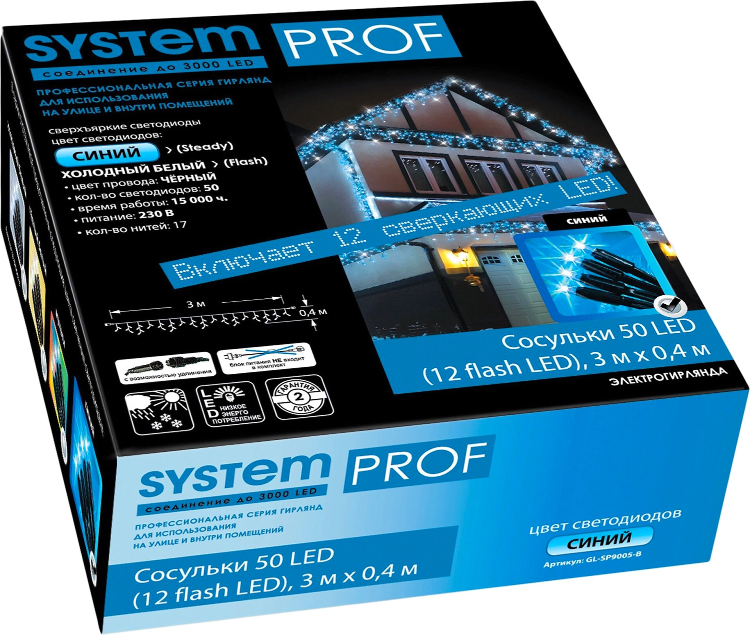 Гирлянда бахрома SYSTEM PROF 50 LED синий, холодный белый 3 м