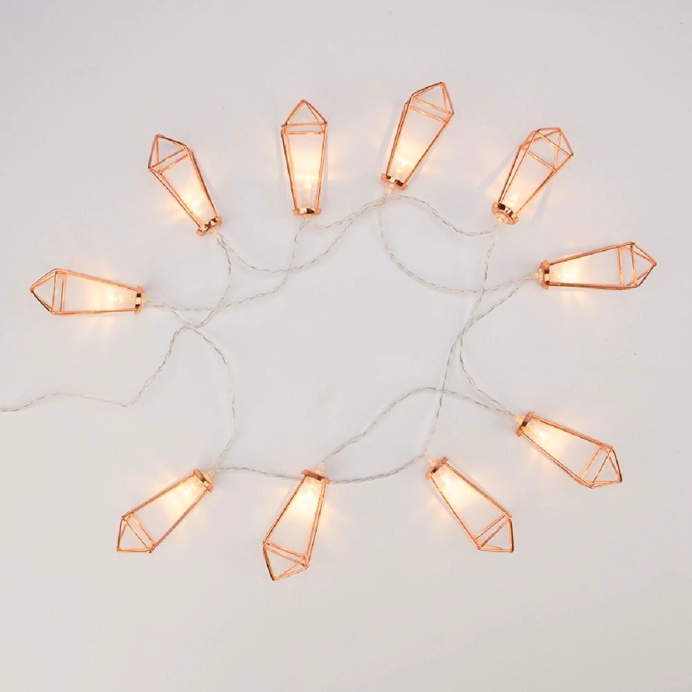 Светодиодная гирлянда "Кристаллы" длиной 1,5 метра - оригинальный, безопасный световой декор, созданный, чтобы притягивать внимание к яркому уникальному стилю вашего дома. Насадки в виде бронзовых кристаллов расположены на проводе, защищенном изоляционным слоем из прозрачного ПВХ. 10 диодов излучают теплый белый свет и мягко подсвечивают декоративные элементы. Гирлянда не нуждается в розетке: питается от собственного блока с 2 батарейками типа АА, что делает изделие мобильным и абсолютно безопасным даже для маленьких детей.