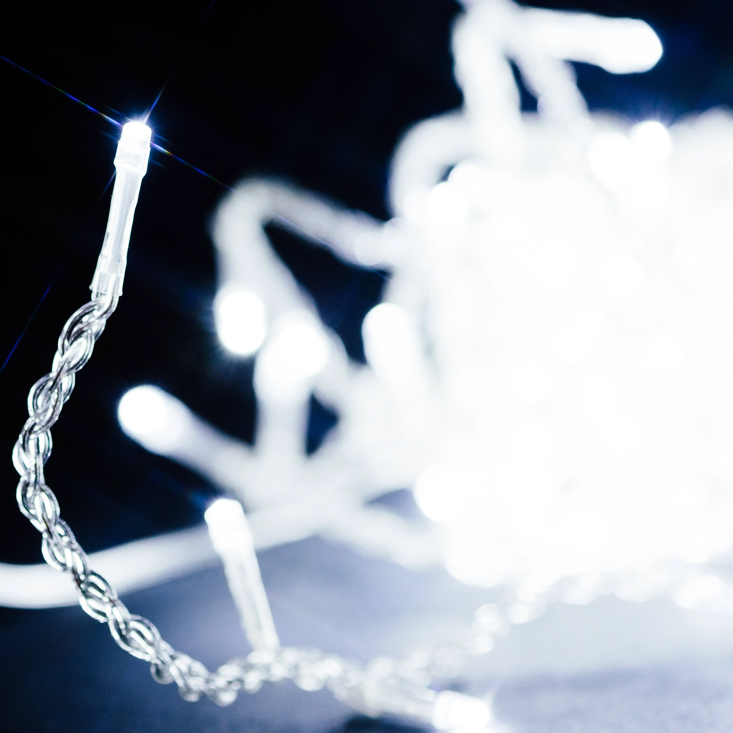 Гирлянда "Дождь" 1,5x1,5 м выполнена в виде занавеса и идеально подойдет для оформления окон внутри помещений. Украшение представляет собой горизонтальный шнур-шину, с равномерно расположенными на нем вертикальными нитями. Прозрачный ПВХ выступает в роли изоляции и надежно защищает изделие от перегибов и повреждений. 144 ярких светодиода излучают белый свет, россыпью огней создают эффект сверкающего дождя. Ритм свечения меняется при помощи контроллера с 8 режимами. Трехметровый шнур питания позволяет подключить изделие к розетке без дополнительных удлинителей. Светодиоды потребляют малое количество электроэнергии и практически не нагреваются. Гирлянда имеет степень защиты IP20 и предназначена для использования в интерьере и сухих помещениях с умеренной влажностью.