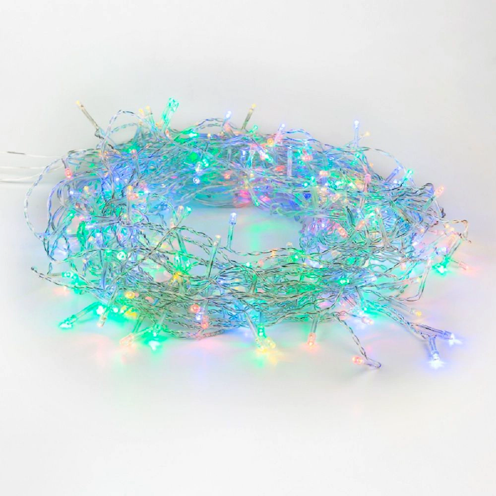 Гирлянда "Дождь" 1,5x1,5 м выполнена в виде занавеса и во включенном состоянии создает россыпь разноцветных огней, которые меняют ритм свечения под управлением контроллера. Контроллер имеет 8 режимов свечения: 7 динамических и 1 статичный. 144 ярких разноцветных светодиода, расположенных на проводе из прозрачного ПВХ, в затемненном помещении создают эффект струящегося дождя - великолепное зрелище, которое привлекает внимание и заставляет подолгу любоваться игрой света. Гирлянда подключается в электросеть 230 В при помощи шнура питания длиной 3 метра. Светодиодный занавес - идеальное решение для оформления окон.