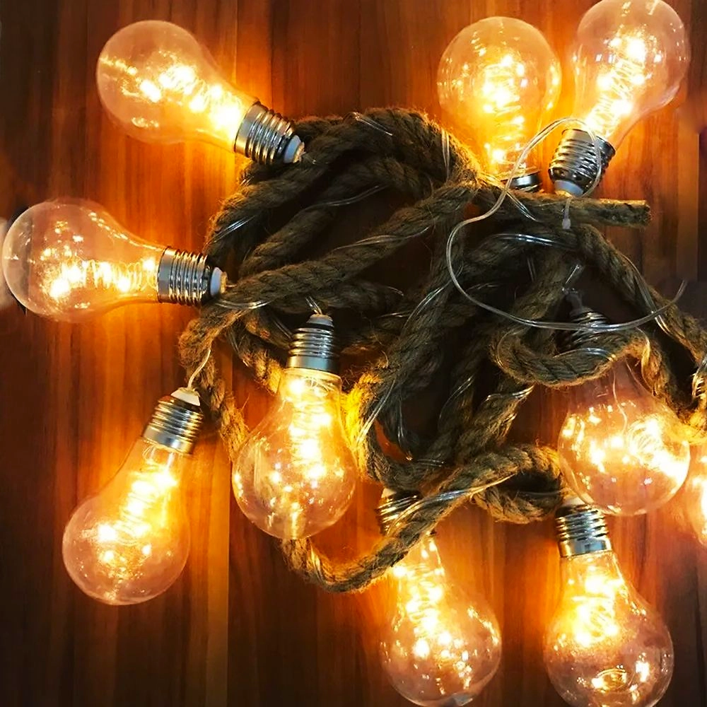 Гирлянда со светодиодами ДЖУТ для декоративной подсветки внутри помещений
