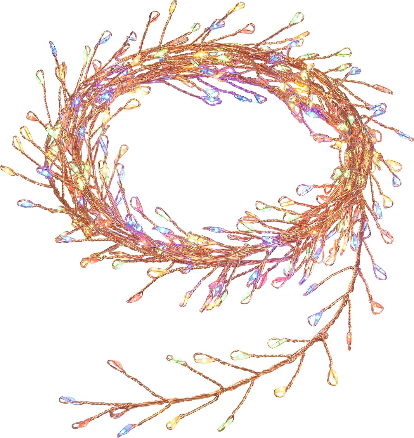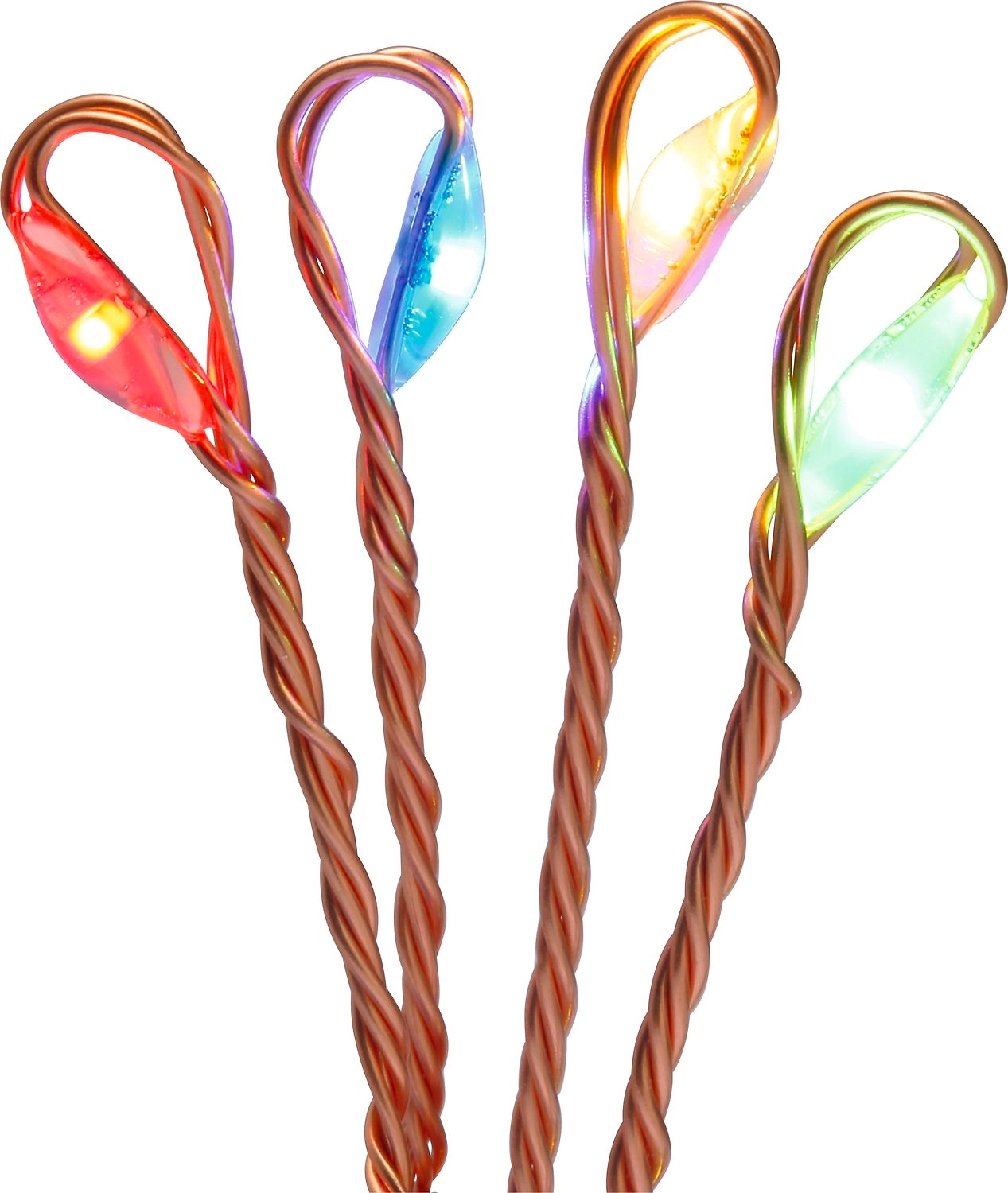 Гирлянда длиной 2,4 м состоит из 240 led-огней, расположенных на декоративной проволоке. Лампы излучают красный, синий, зеленый и желтый свет, выглядят очень эффектно.