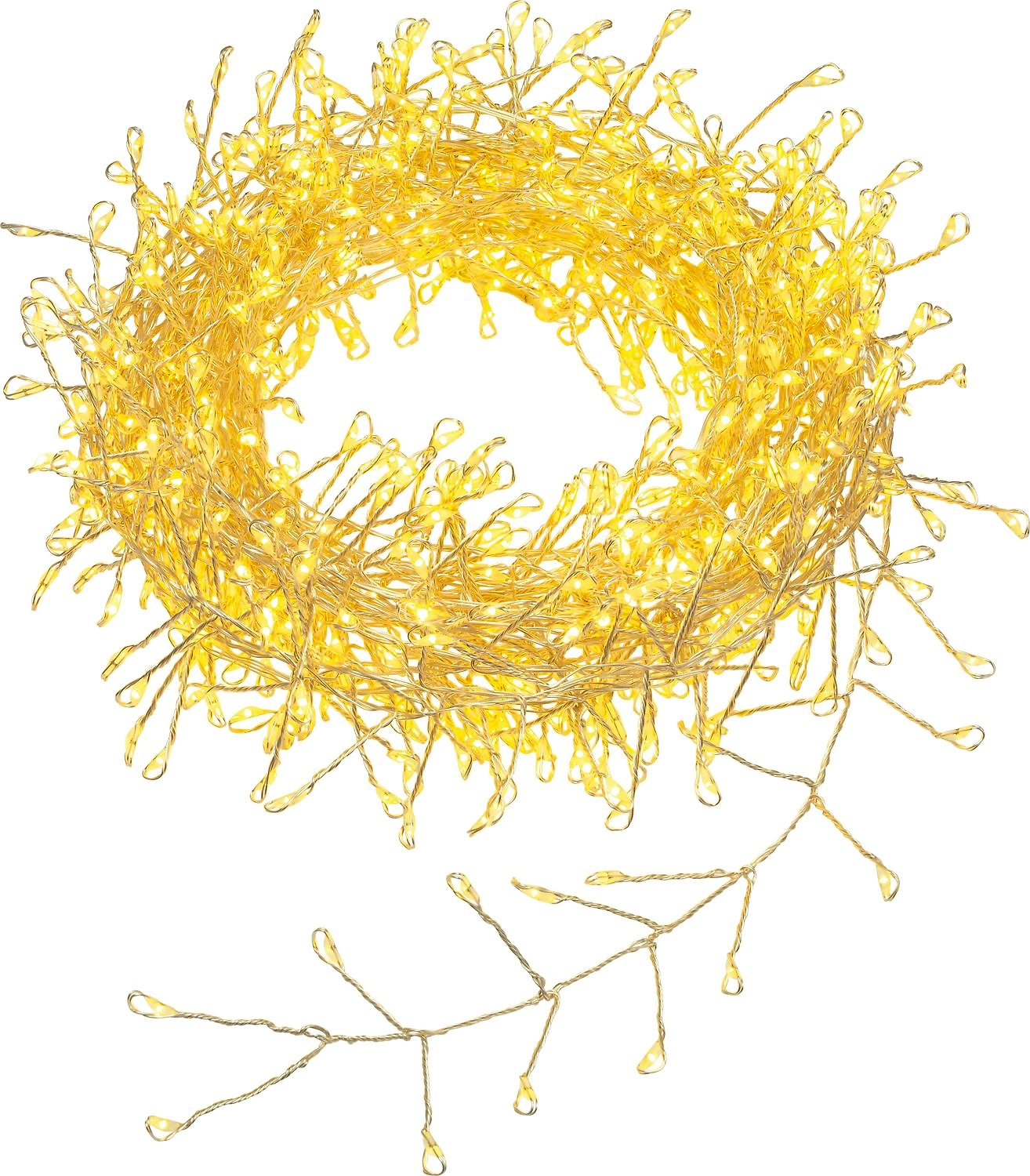 Гирлянда длиной 9 метров состоит из 720 led-огней, расположенных на декоративной проволоке. Лампы излучают теплый белый свет, создают уютное и сказочное новогоднее настроение.