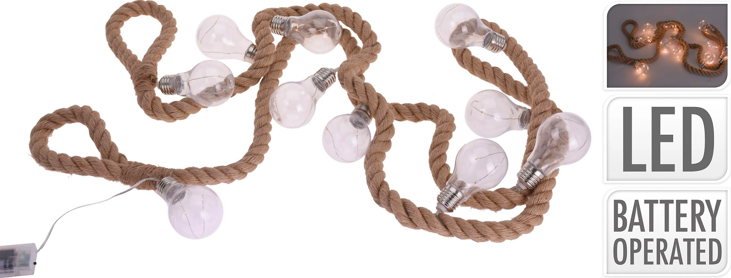 Гирлянда LED 120 см выполнена из толстого текстильного каната, работает от стандартных пальчиковых батареек.