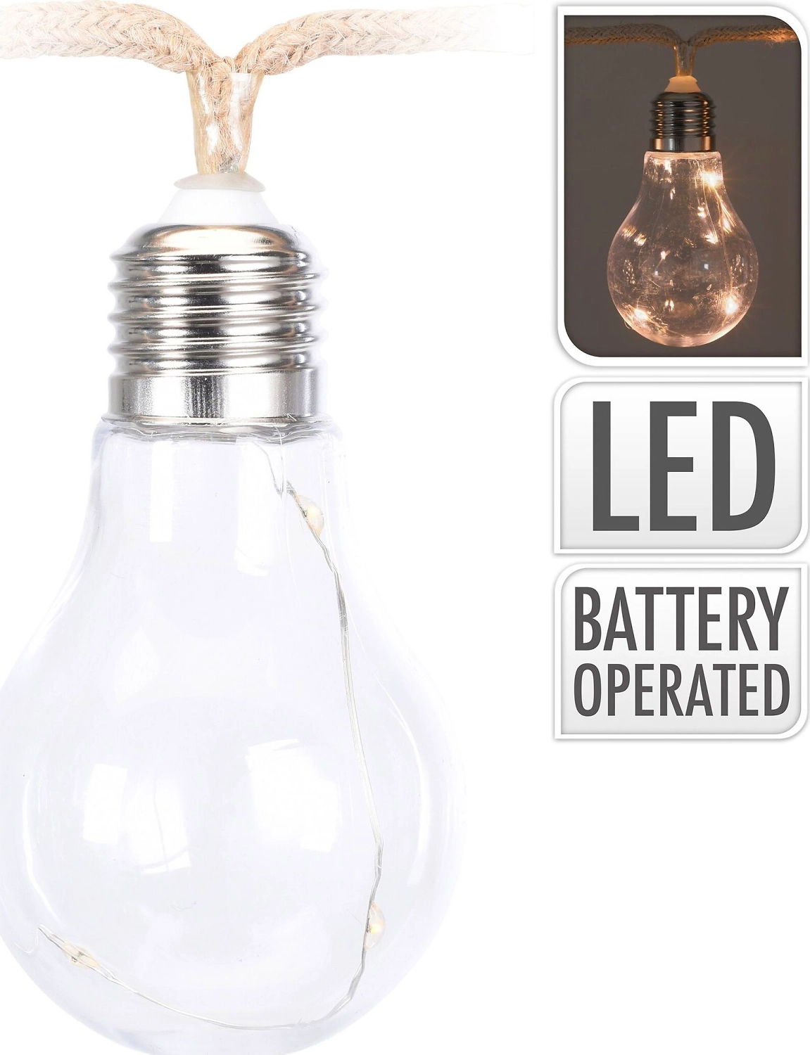 Гирлянда 10 LED выполнена из прочной текстильной веревки с большими грушевидными лампами. Изделие работает от стандартных пальчиковых батареек.