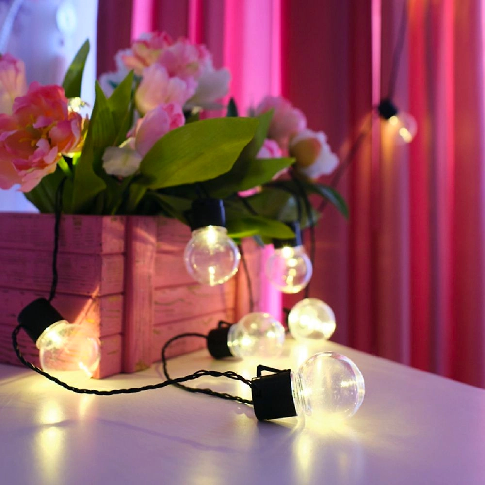 Светодиодная гирлянда в стиле лофт длиной 5 метров излучает теплое белое свечение и отлично подходит для декора интерьеров жилых, общественных помещений: квартир, домов, кафе, студий, ресторанов,