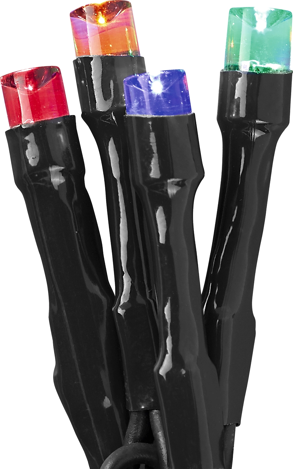 Разноцветная уличная новогодняя гирлянда состоит из 80 светодиодных ламп. Может использоваться для наружного и внутреннего декора.