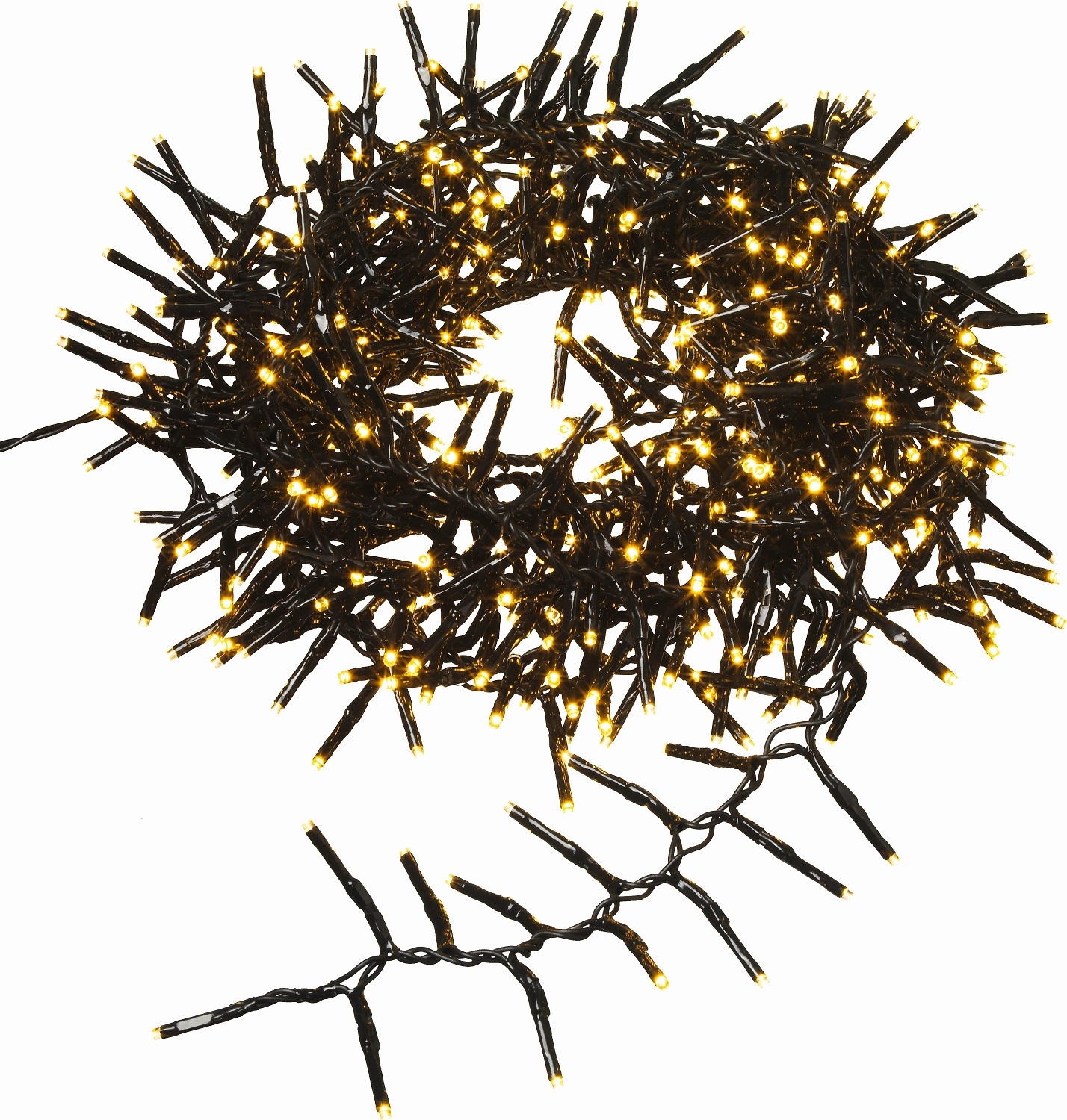 Светодиодная уличная гирлянда представляет собой декоративную подсветку нового поколения с продолжительным сроком службы. 500 миниатюрных лампочек с золотым свечением создают красивую праздничную иллюминацию. Гирлянда в виде грозди имеет длину 9 метров, подходит для оформления крупных объектов.