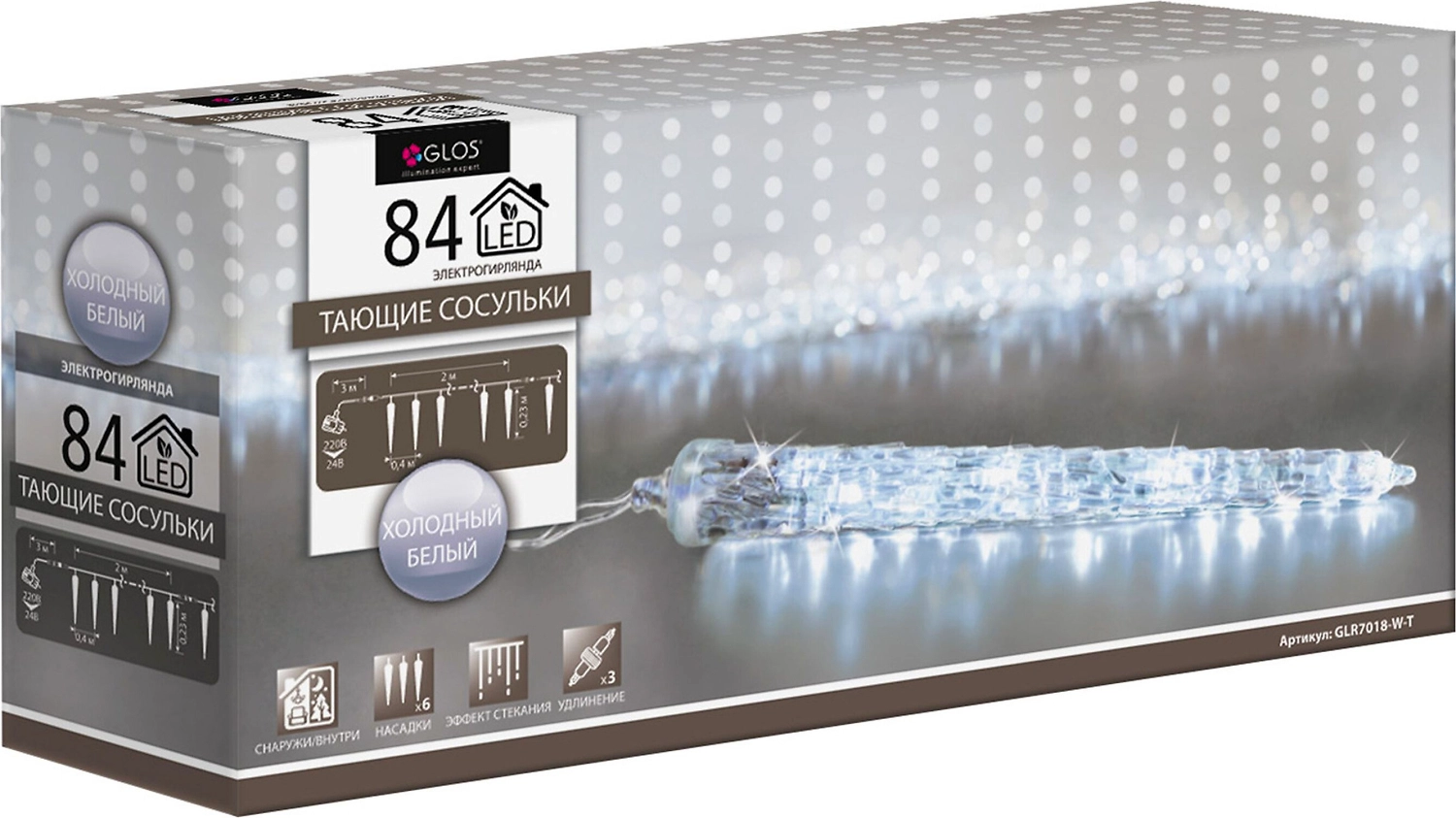 Гирлянда наружная Glos IE Тающие сосульки 84 LED холодный белый/синий 3 м