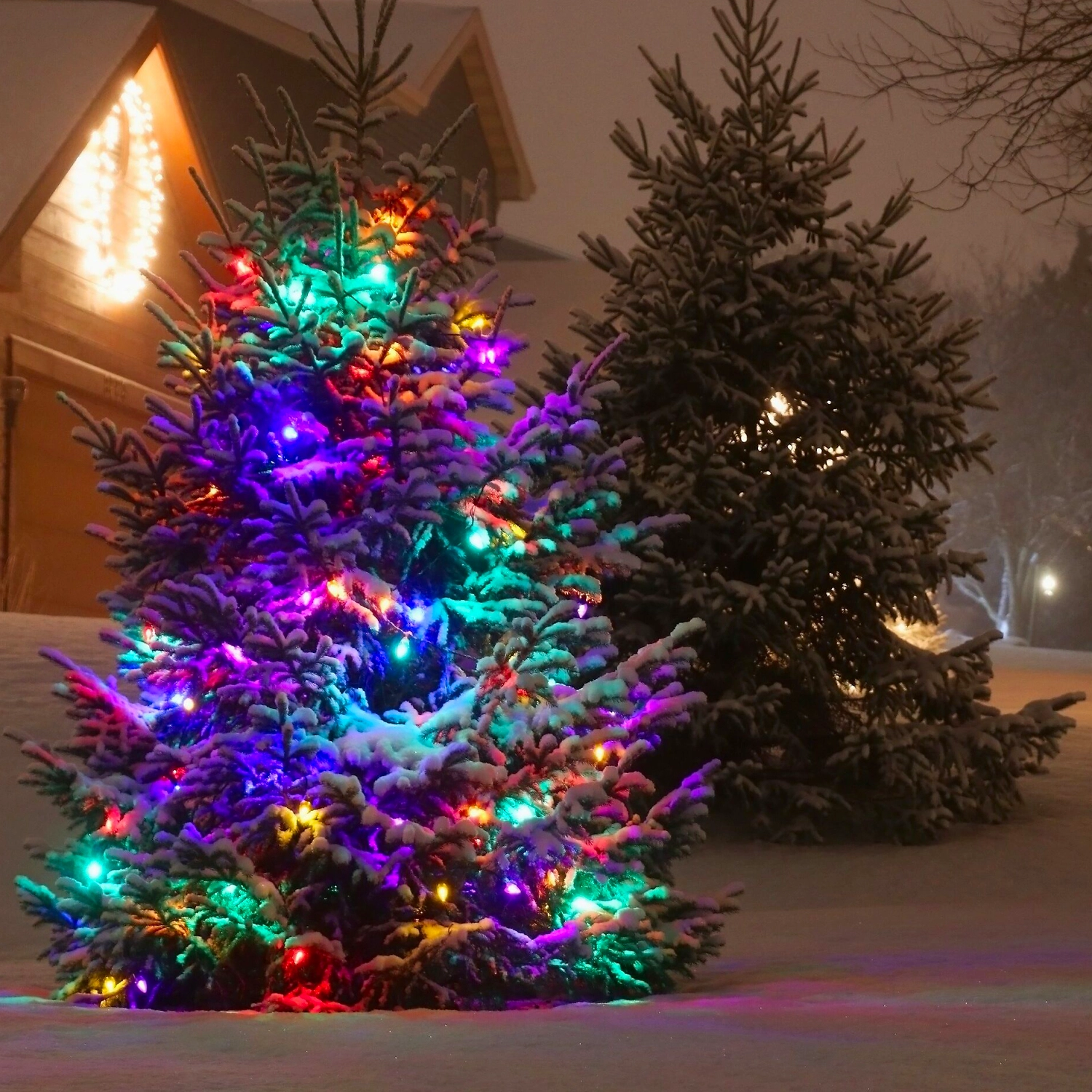 В хорошую погоду центром праздничного гулянья может стать елочка во вдворе. Украсьте ее огоньками и она превратится в полноправную хозяйку торжества. Сияние разноцветных лампочек на ветках лесной красавицы соберет вместе родню и друзей, чтобы обмениваться подарками и добрыми улыбками.