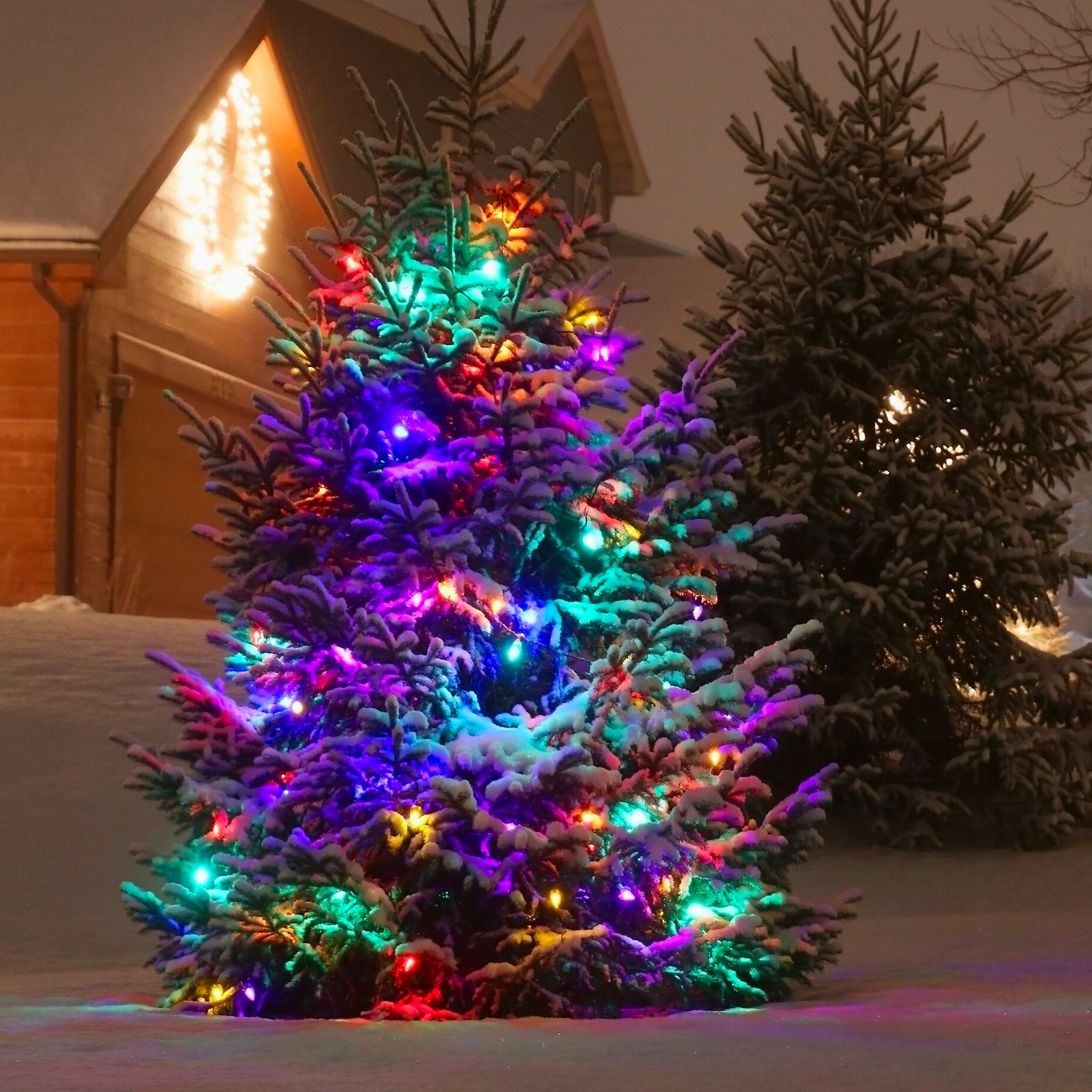 В хорошую погоду центром праздничного гулянья может стать елочка во вдворе. Украсьте ее огоньками и она превратится в полноправную хозяйку торжества. Сияние разноцветных лампочек на ветках лесной красавицы соберет вместе родню и друзей, чтобы обмениваться подарками и добрыми улыбками.