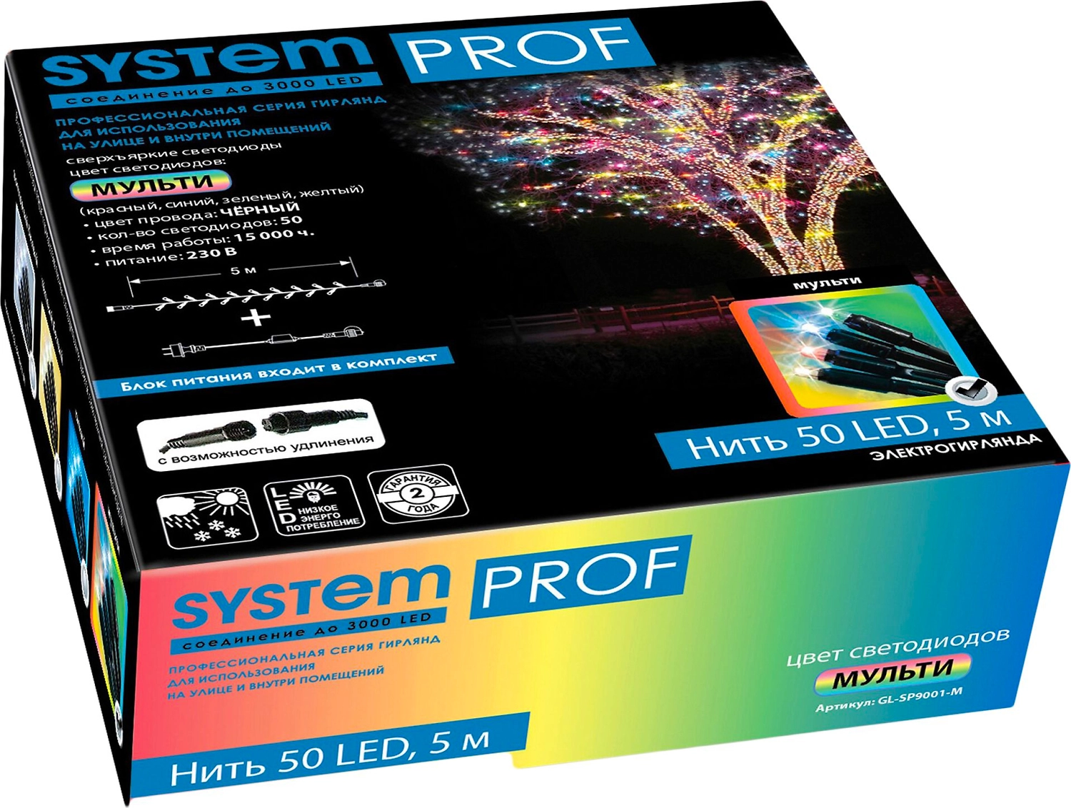Гирлянда наружная SYSTEM PROF Нить 50 LED мульти 5 м