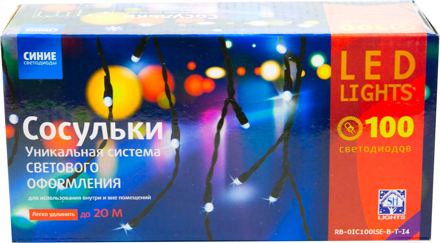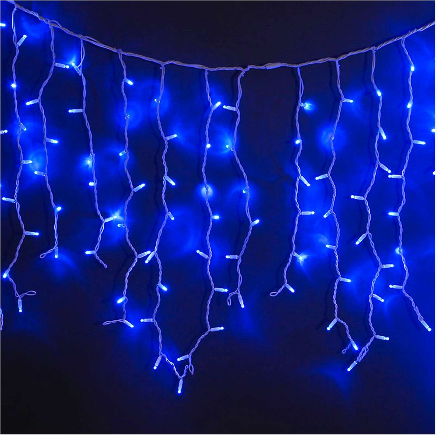 - Гирлянда светодиодная представляет собой тонкий провод, к которому прикреплены 20 свисающих сегментов различной длины с многочисленными светодиодами синего цвета.