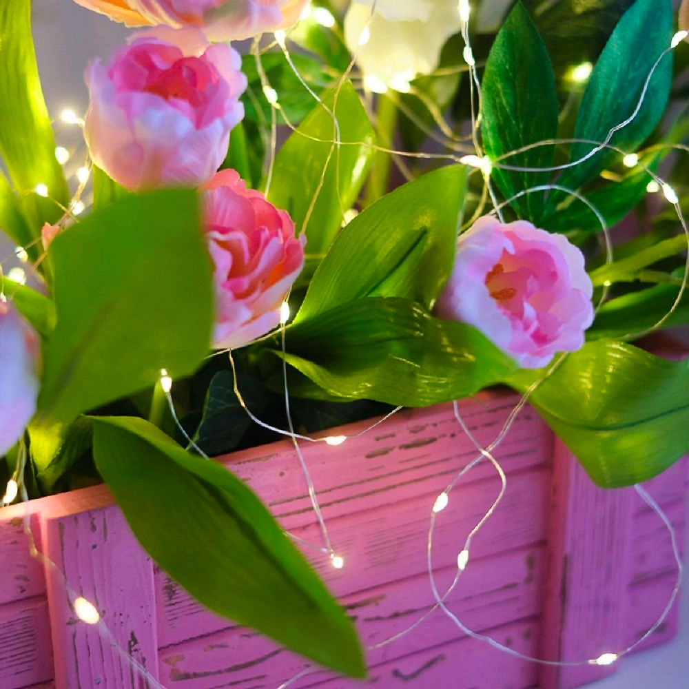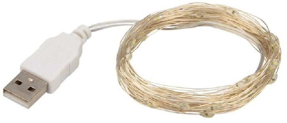 Светодиодная гирлянда "Роса" - прекрасный декоративный элемент, светящийся разными огоньками и создающий атмосферу праздника и уюта. Это отличный способ акцентировать внимание на отдельных предметах интерьера, создать неповторимый арт-объект или использовать в качестве дополнительной подсветки. Гирлянда может эффектно подчеркнуть красоту картины, вазы с цветами, статуэтки или украсить небольшую елочку. Часто "Роса" украшает не только интерьер, но и с успехом применяется на торговых площадках и ярмарках для привлечения внимания к продукции. Гирлянда состоит из тонкого провода длиной 5 метров, с расположенными на нем 50 теплыми белыми долговечными светодиодами. В качестве питания у данной модели гирлянды выступает USB-разъем, который крепится на дополнительный провод длиной 20 см. Создайте атмосферу праздника с помощью светодиодной гирлянды "Роса"!