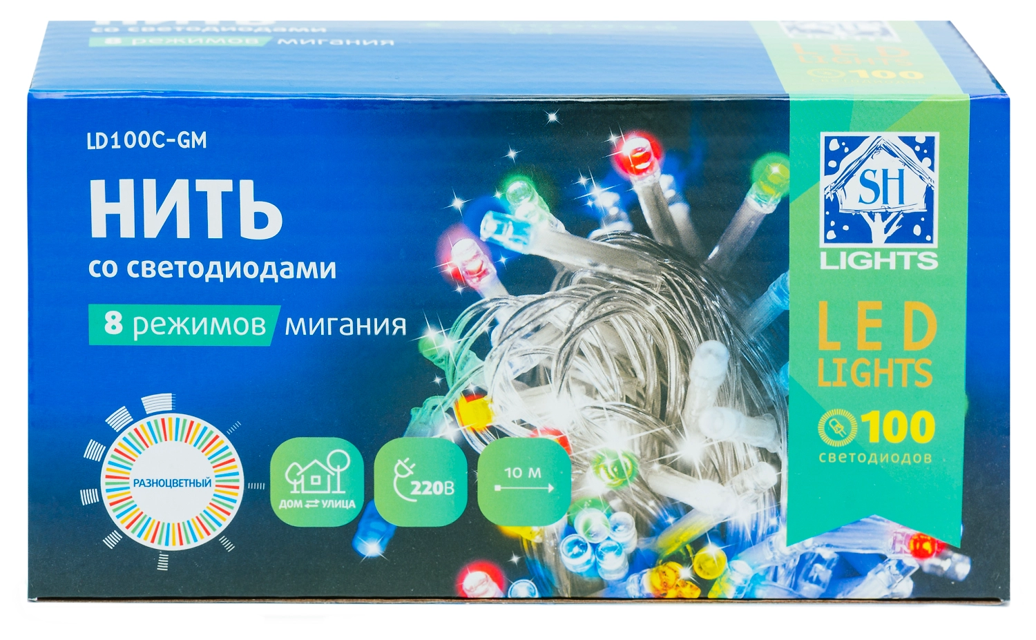 Гирлянда нить №1 SH LIGHTS 100 LED мультиколор 10 м