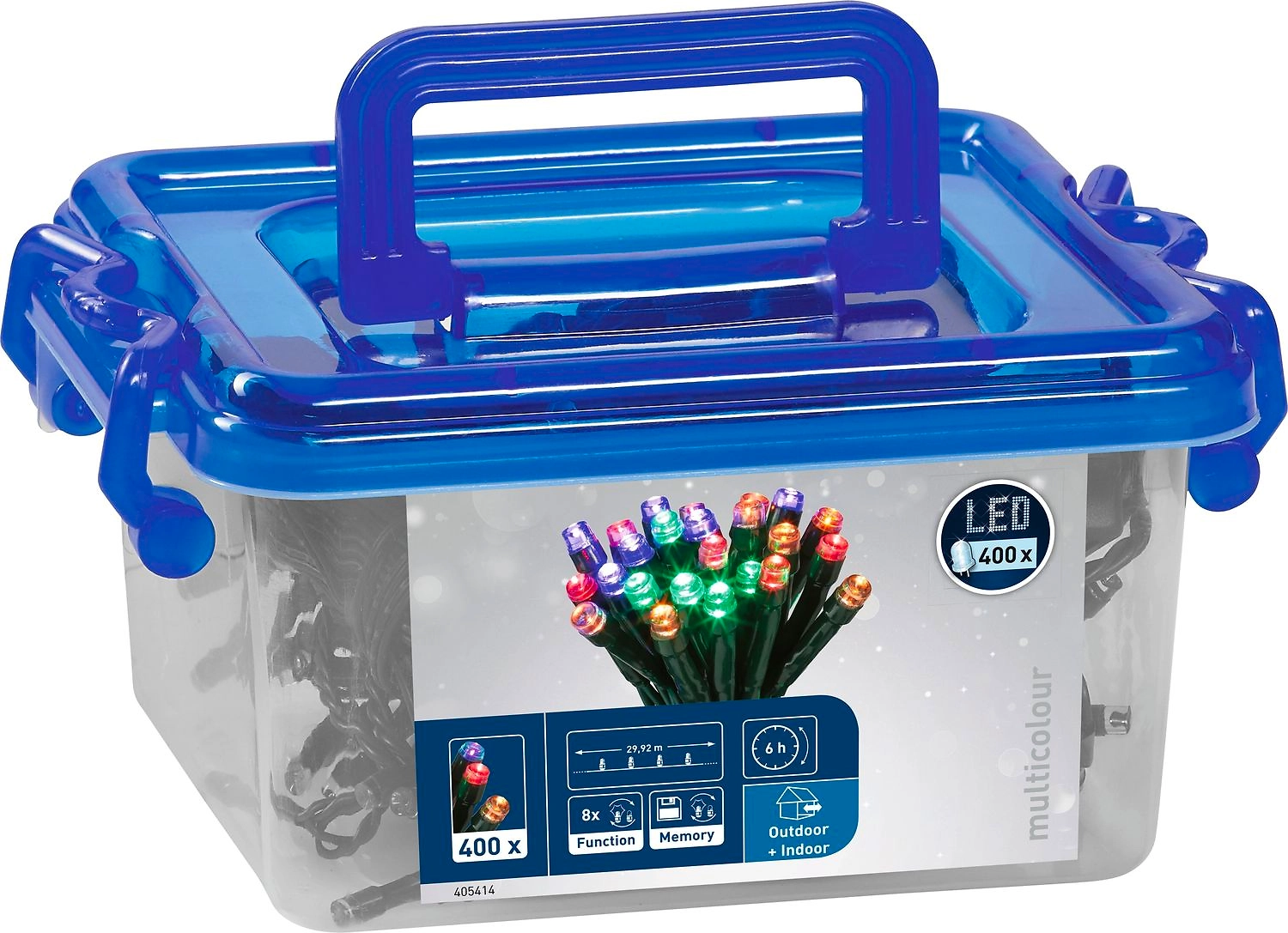 Гирлянда Нить состоит из 400 разноцветных LED ламп, работает в восьми разных режимах, в том числе непрерывного свечения и мигания в медленном или быстром ритме. Светодиодный декор используется в помещении и на улице, запоминает последние выбранные настройки, имеет таймер на шесть часов.