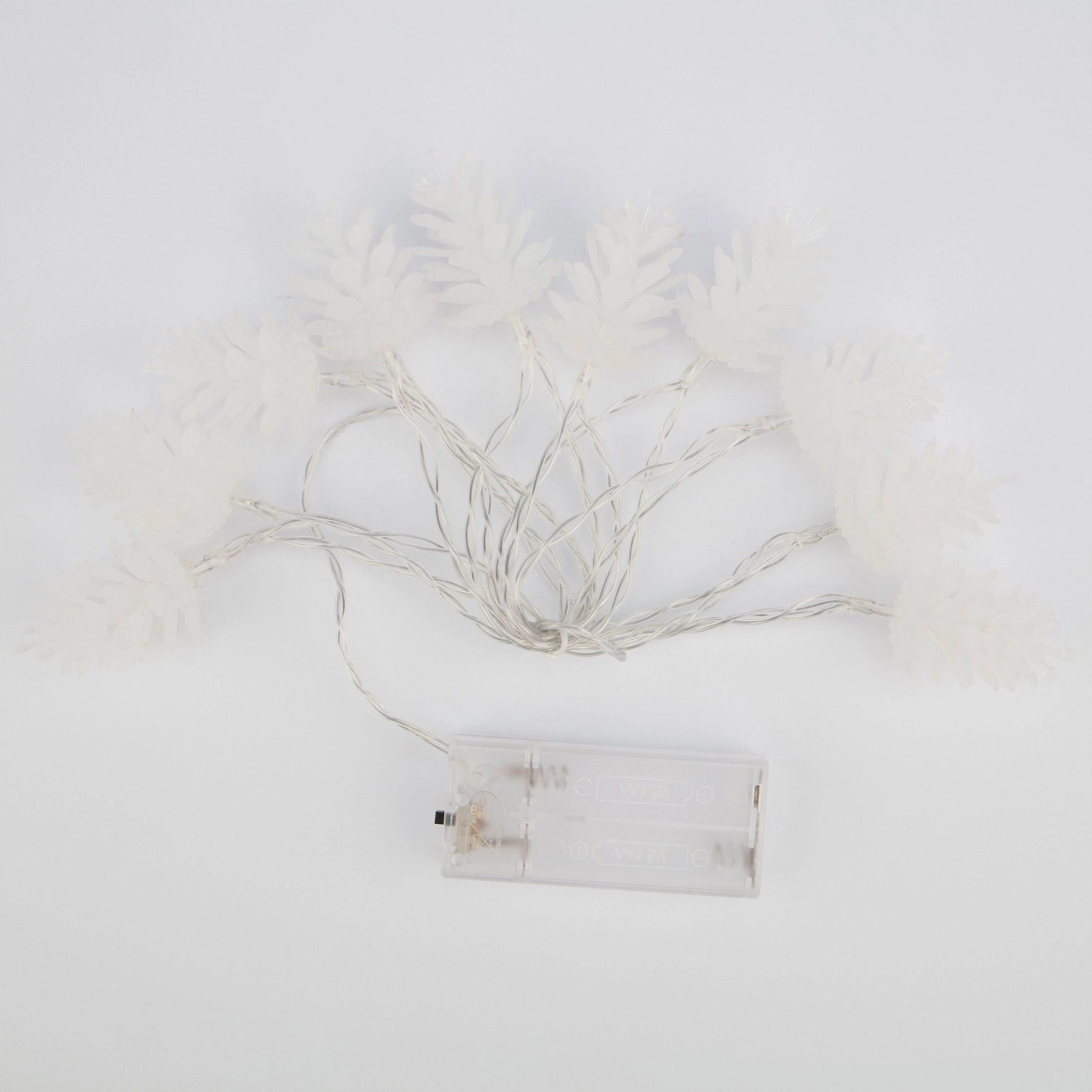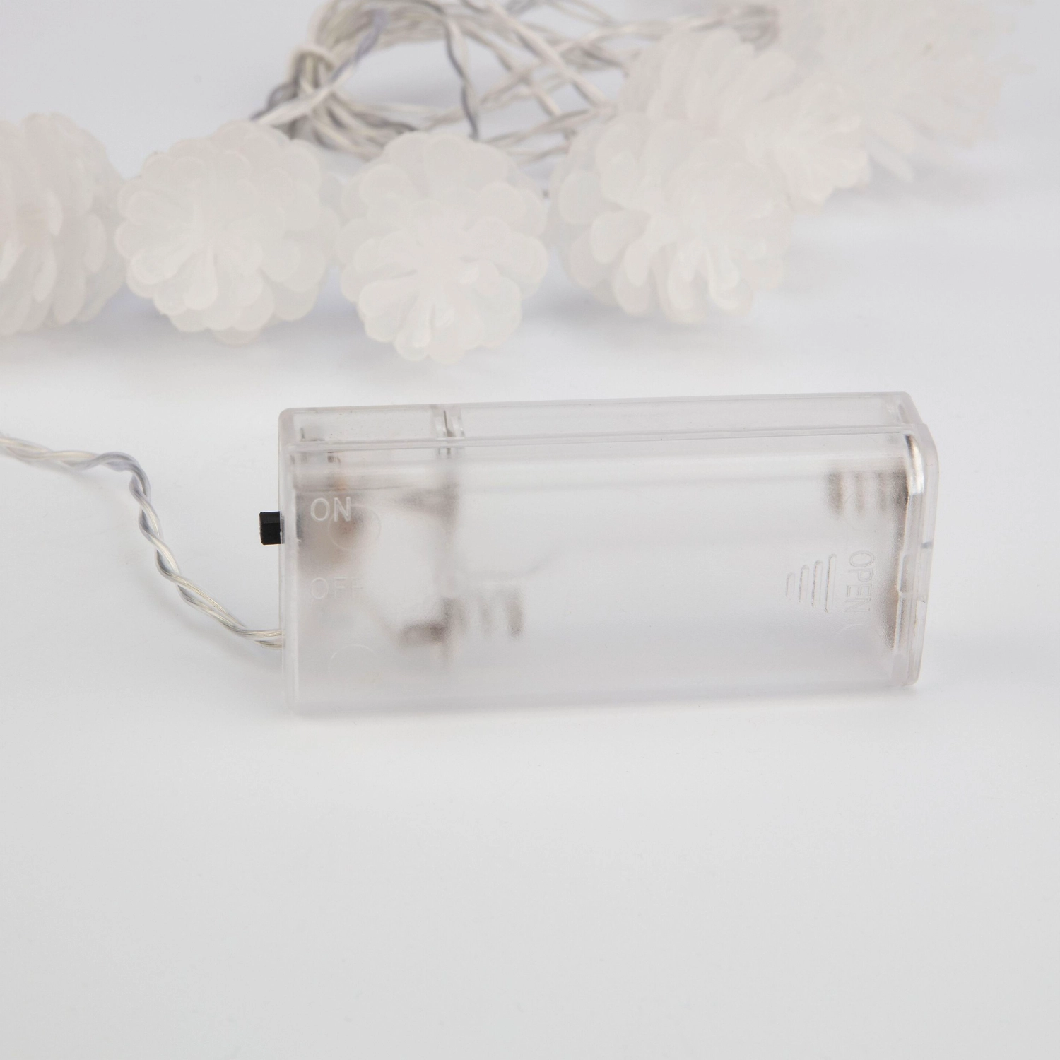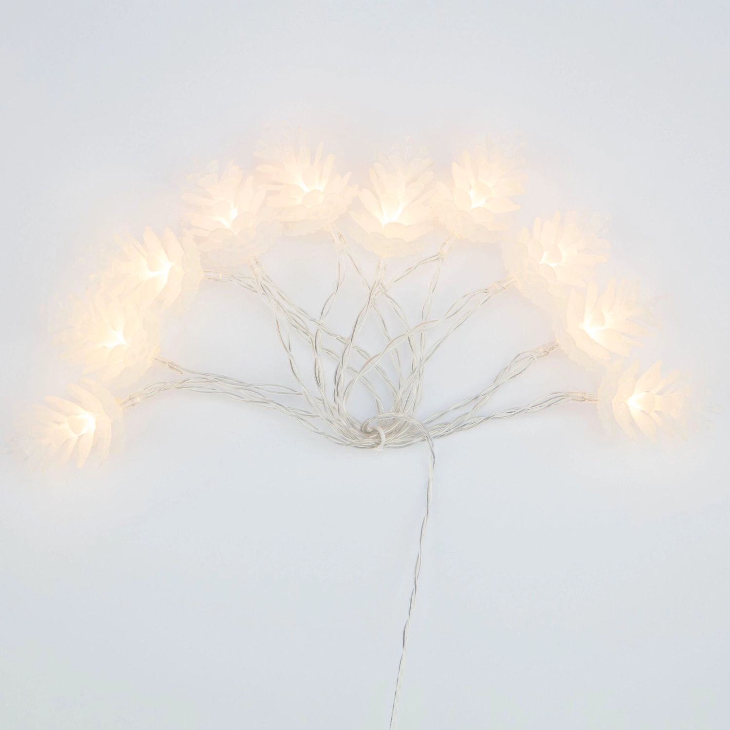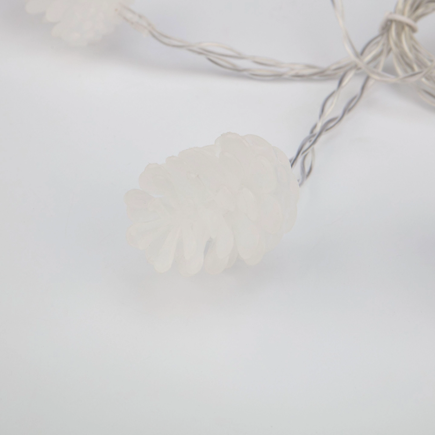 Светодиодная гирлянда Шишки имеет провод из ПВХ с внешней изоляцией, на котором расположены десять пластиковых насадок в виде шишек с диодами внутри. LED-лампочки излучают теплый белый свет, что способствует созданию в интерьере уютной атмосферы.