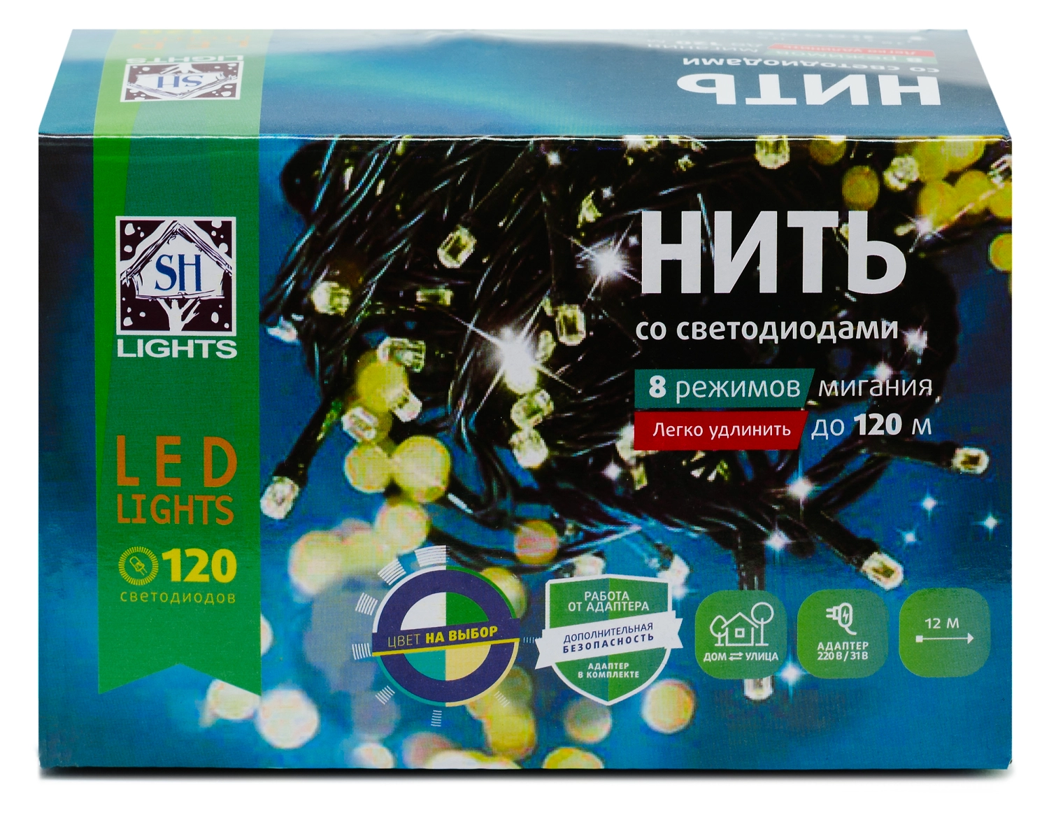 Гирлянда нить SH LIGHTS 120 LED белый 12 м