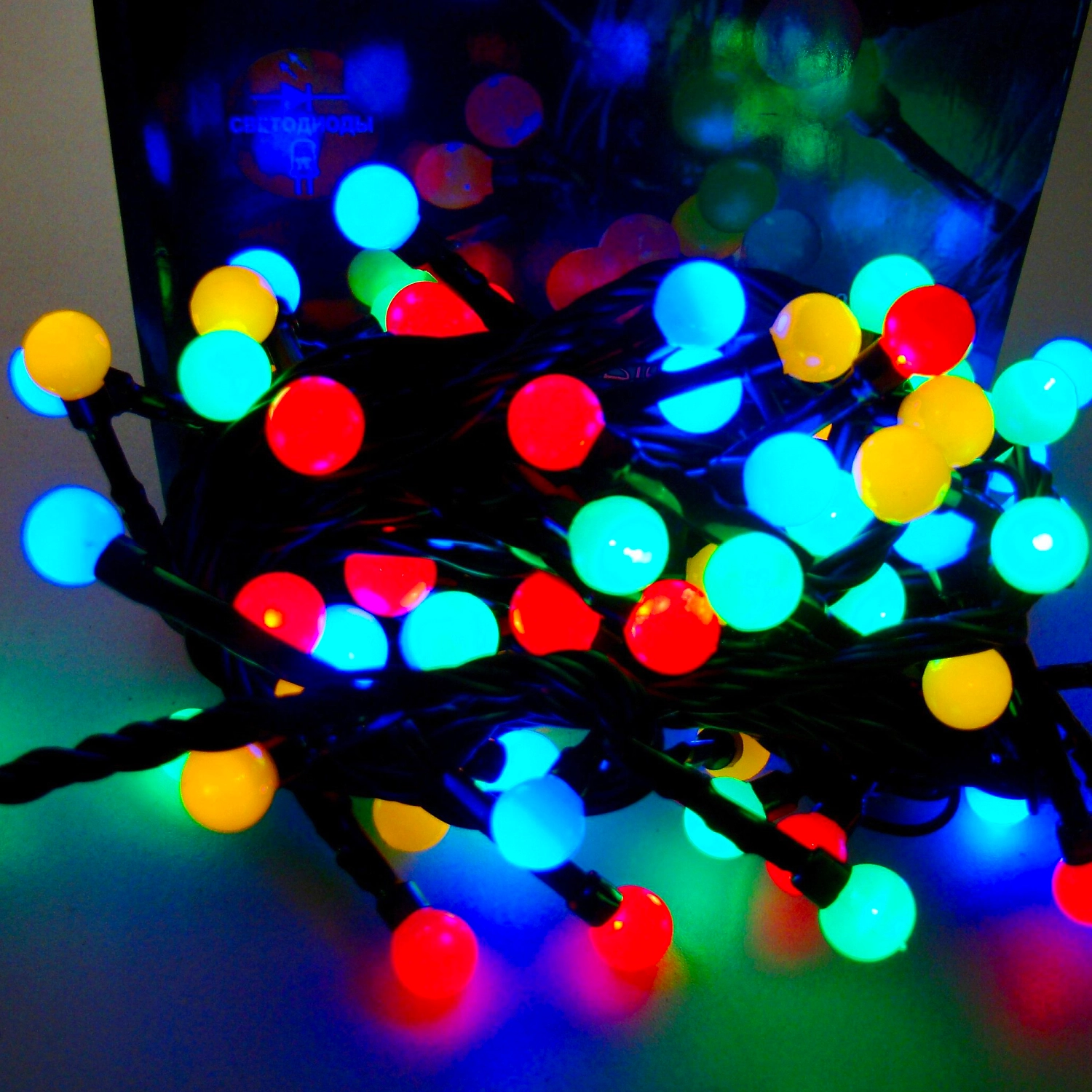 Новогодняя гирлянда ШАРИКИ жемчужные со светодиодами для декоративной подсветки внутри помещений с 8 режимами мигания