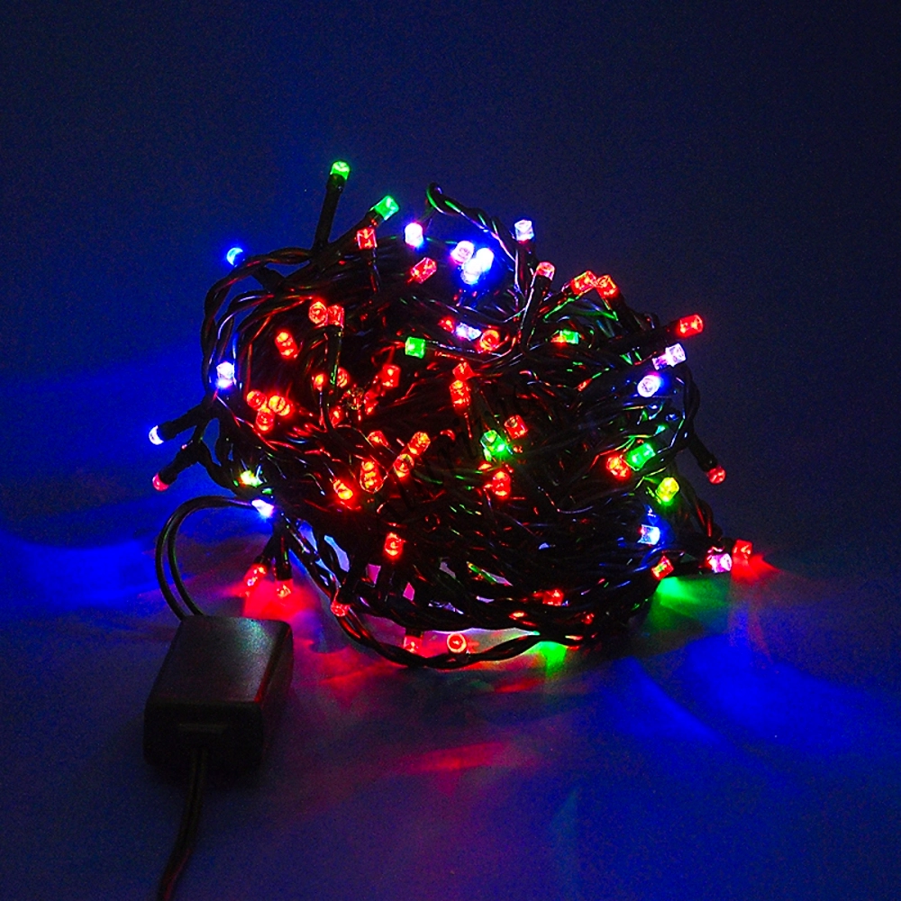 Гирлянда нить SH LIGHTS состоит из 200 миниатюрных разноцветных LED-ламп, расположенных на зеленом проводе, используется в помещении, работает в восьми режимах свечения.