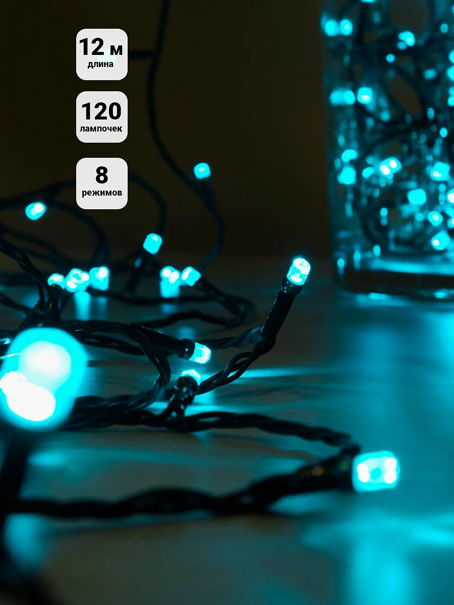 Гирлянда нить SH LIGHTS аквамарин 12 метров