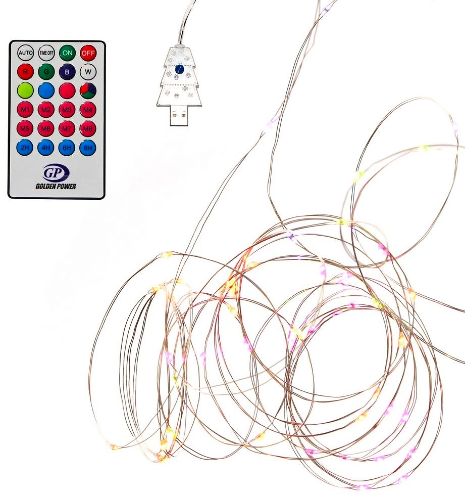 Гирлянда USB разъемом НИТЬ с минисветодиодами для декоративной подсветки внутри помещения с 64 режимами мигания и смены цветов и дистанционным управлением.