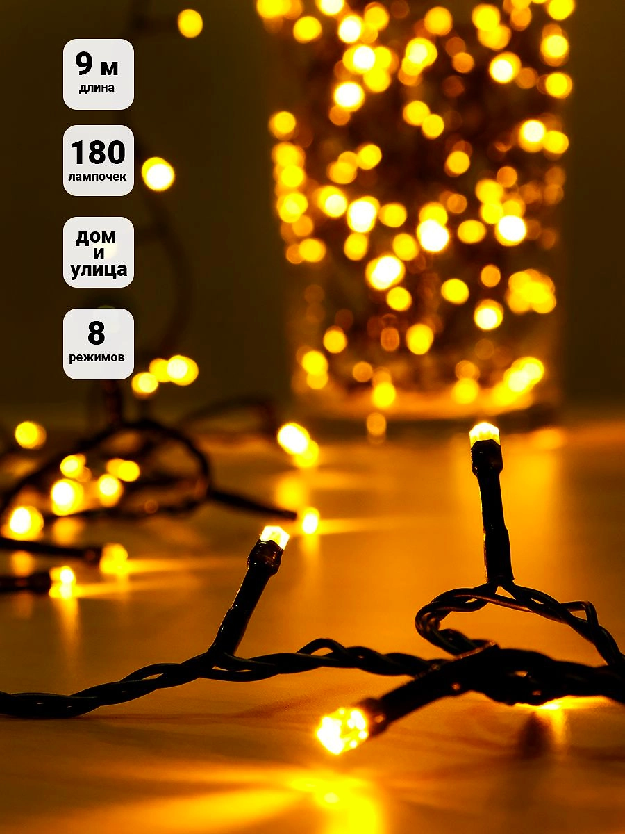Гирлянда для декоративной подсветки внутри и вне помещений 8 режимов мигания.