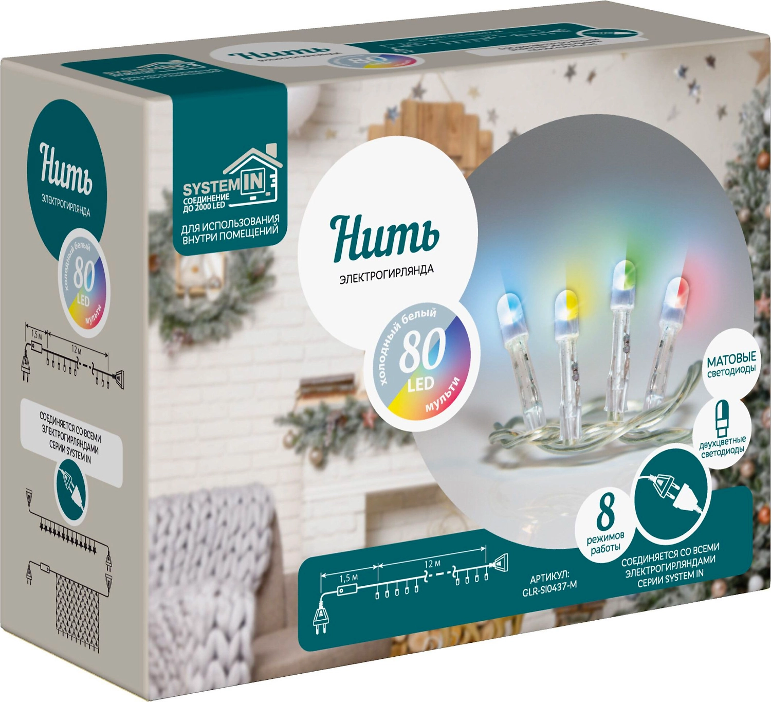 Гирлянда нить SYSTEM IN 80 LED многоцветная 12 м