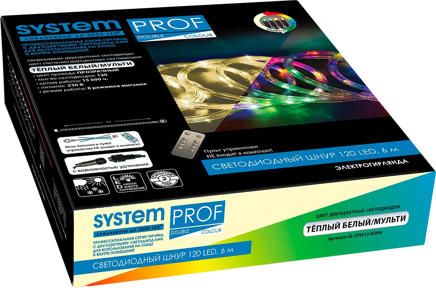 Гирлянда нить SYSTEM PROF 120 LED теплый белый 6 м