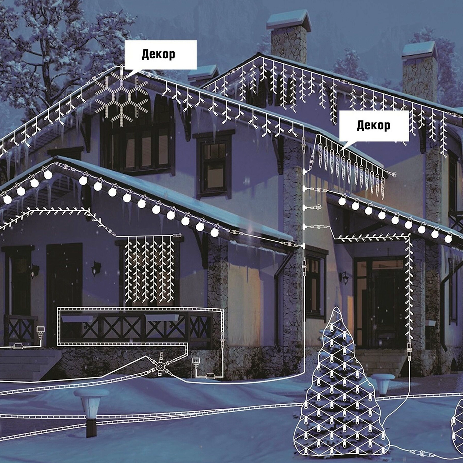 Веселый детский смех и лязг коньков сопровождает шествие снежной королевы, аккуратно развешивающей ледяные кристаллы по крышам домов. Такая красота не должна остаться незамеченной, лучшим оформлением для нее станет электрогирлянда Лампы.