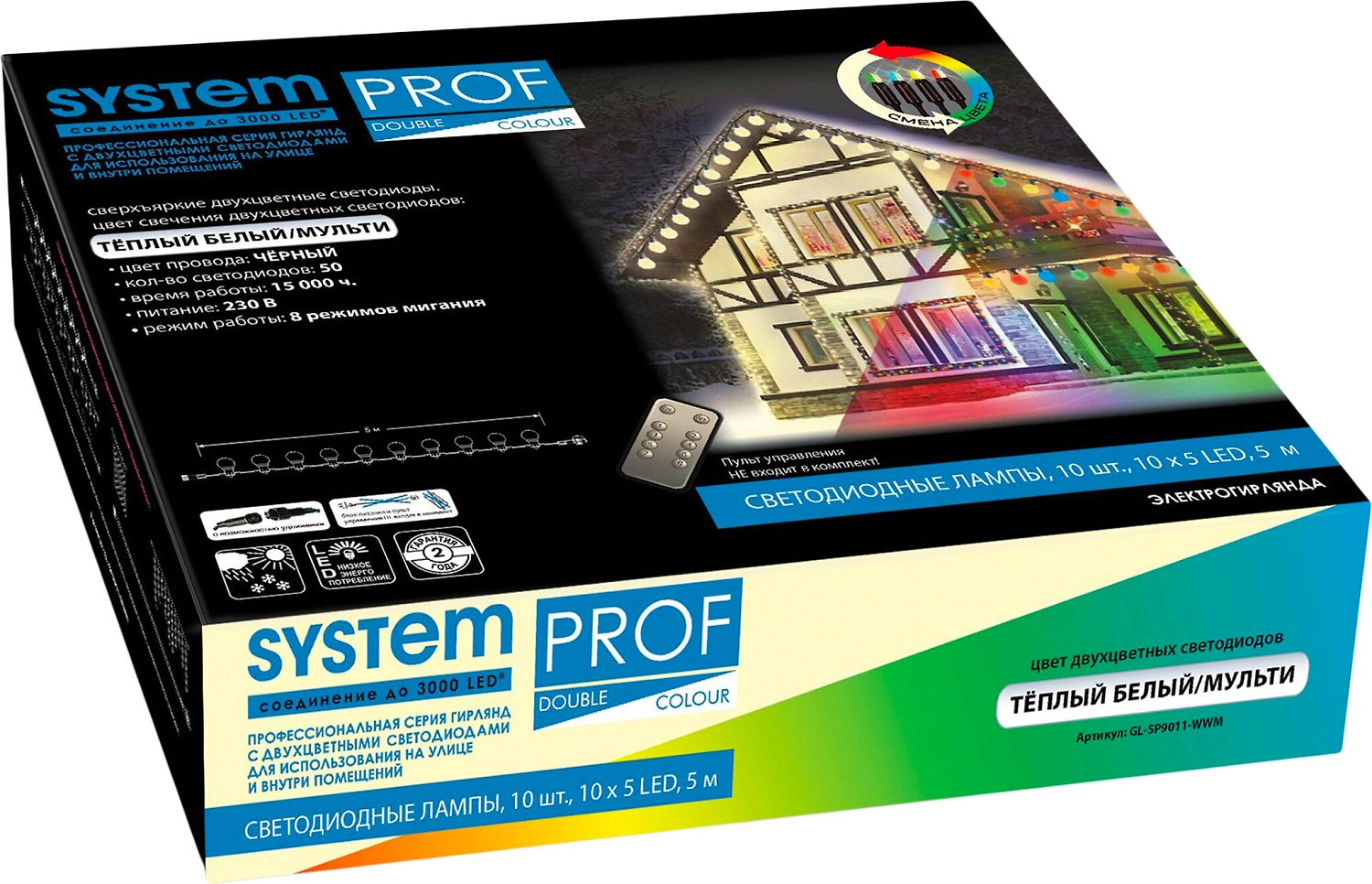 Гирлянда нить SYSTEM PROF 50 LED теплый белый,многоцветный 5 м