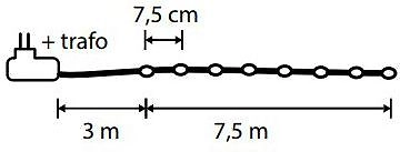 Гирлянда string light капли на плоском проводе белый свет 100 ламп, 8 функций, длина 750 см.