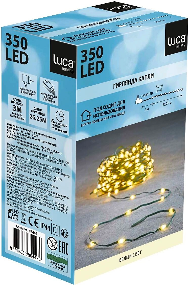 Гирлянда String light капли белый свет 350 ламп, 8 функций, длина 2625 см