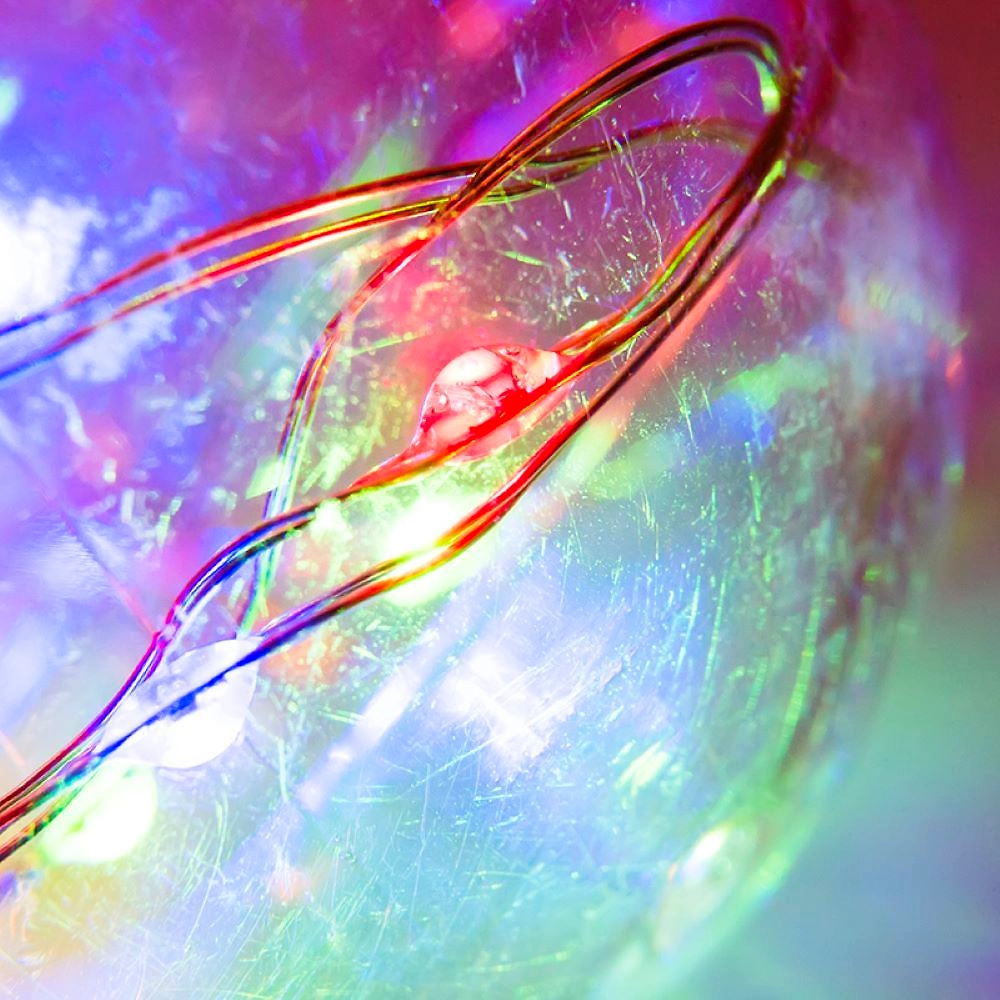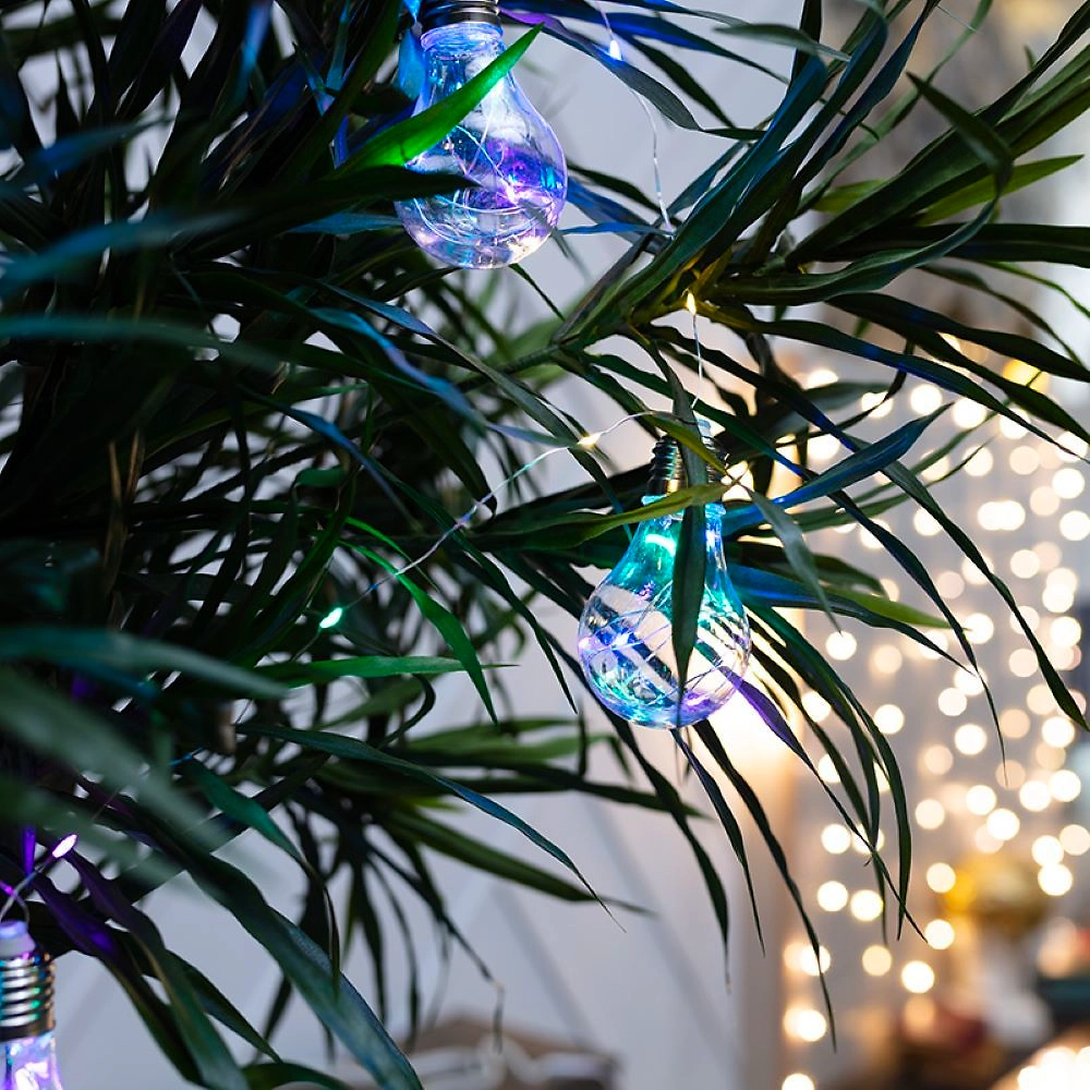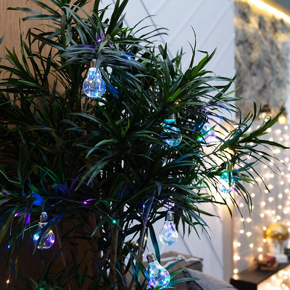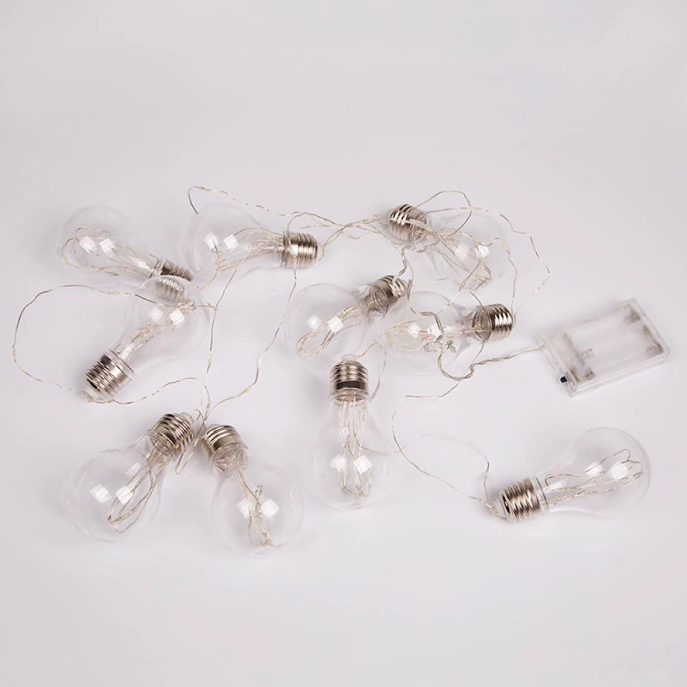 Гирлянда «Ретро-лампы» длиной 3 метра — необычное, стильное интерьерное украшение, которое разнообразит обстановку не только в новогодние праздники, но и в будни. Изделие представляет собой гибкий шнур, на котором находятся 100 диодов, светящихся разноцветными огнями. Дополнительно на кабеле расположены 10 насадок в виде аутентичных ламп накаливания с серебристым цоколем, эффектно подсвечиваемые диодами изнутри. Гирлянда не нуждается в подключении к стандартной электросети: питается от 3 батареек типа АА, что говорит об абсолютной безопасности использования.