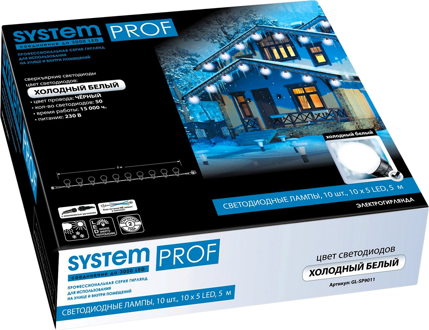 Гирлянда внешняя с насадками SYSTEM PROF Лампы 50 LED белая 5 м