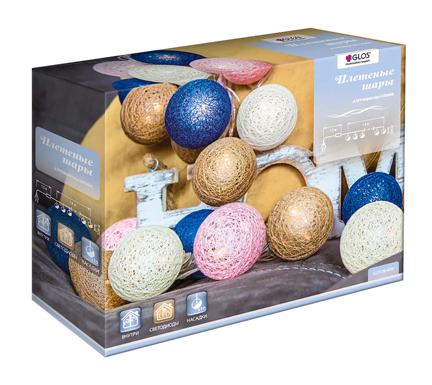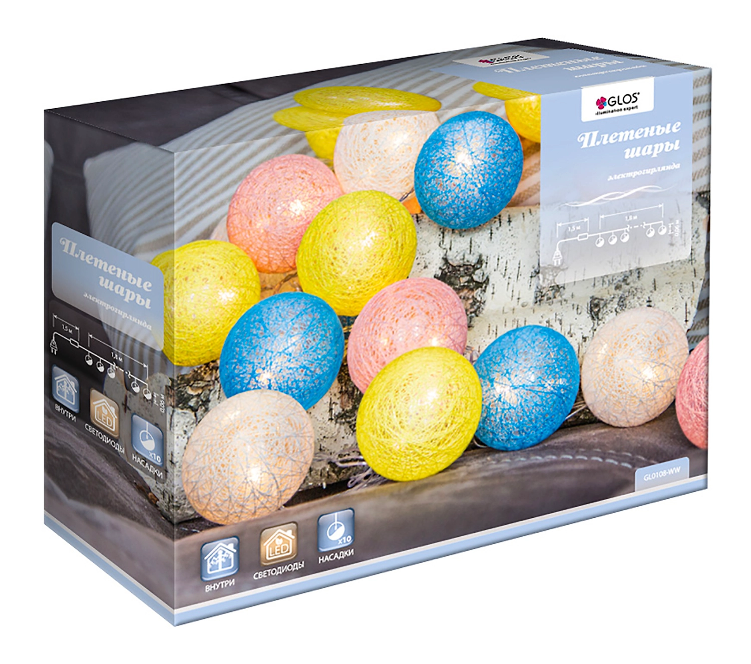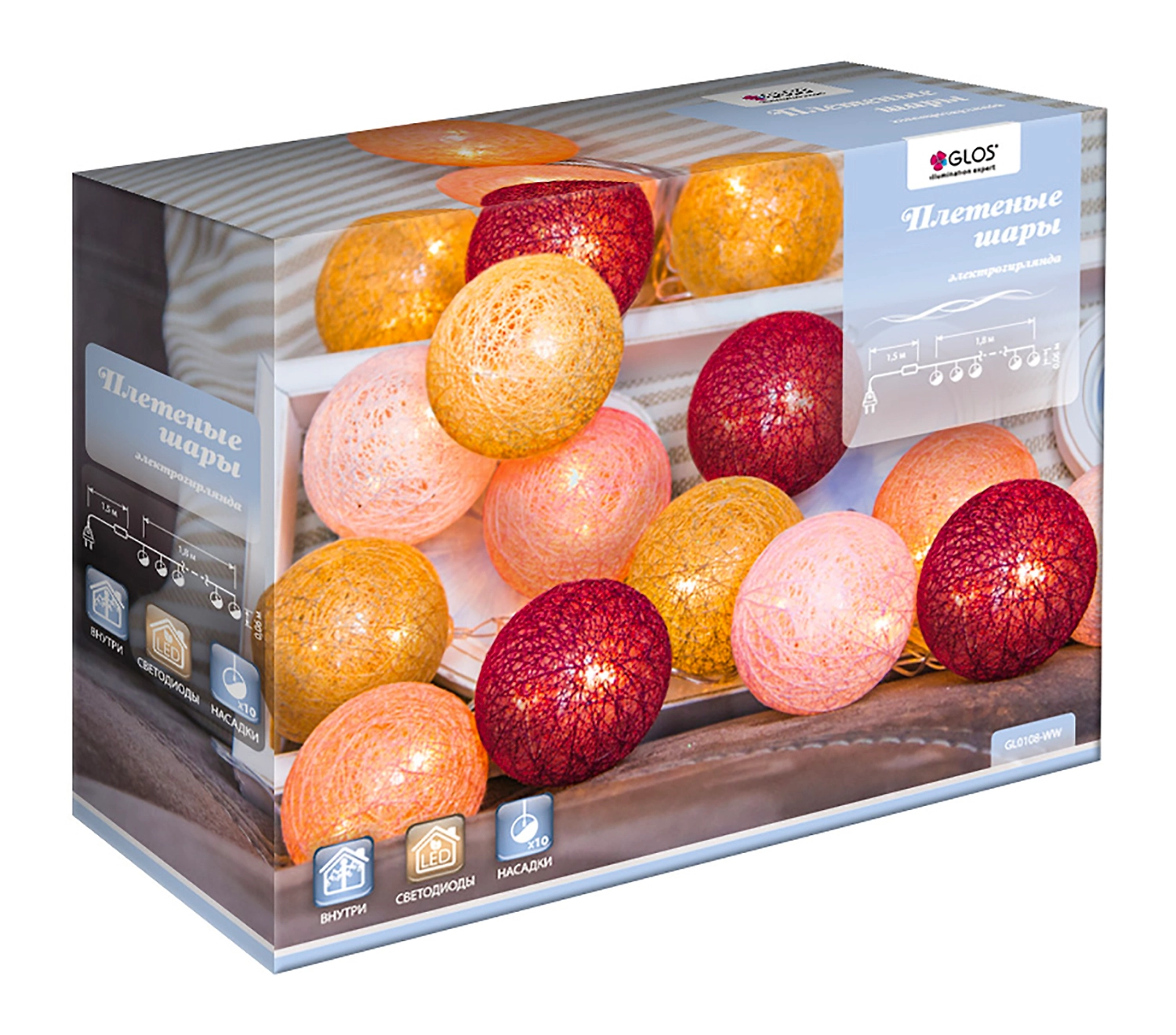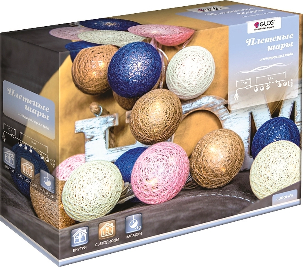 Гирлянда внутренняя Glos Плетеные шары сочетает незаурядный дизайн и высокое качество материалов изготовления. Встроенные светодиоды излучают теплый мягкий белый свет, приятный для зрительного восприятия. Благодаря прозрачному проводу создается впечатление, что шарики парят над еловыми ветками.